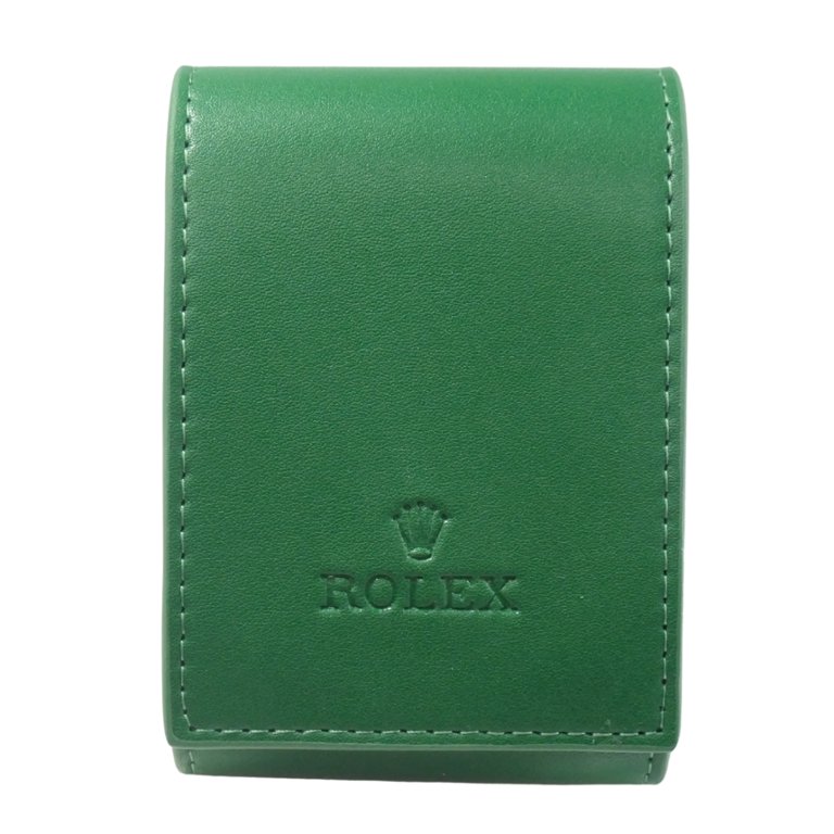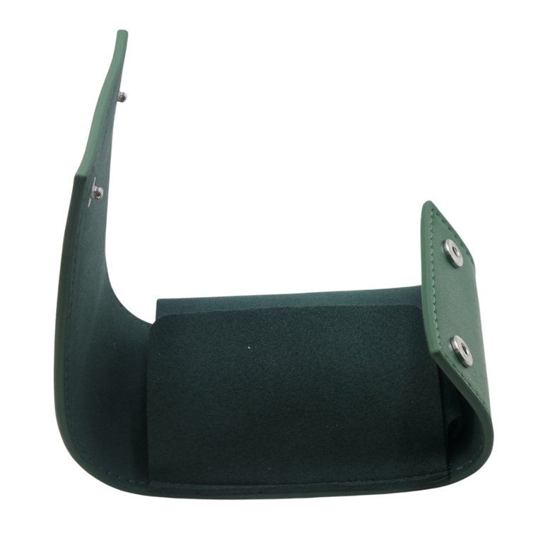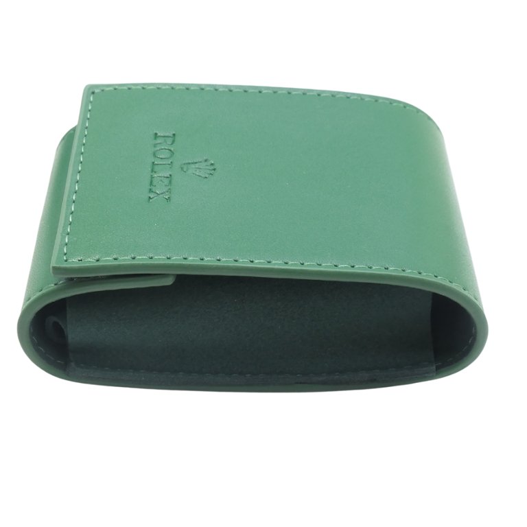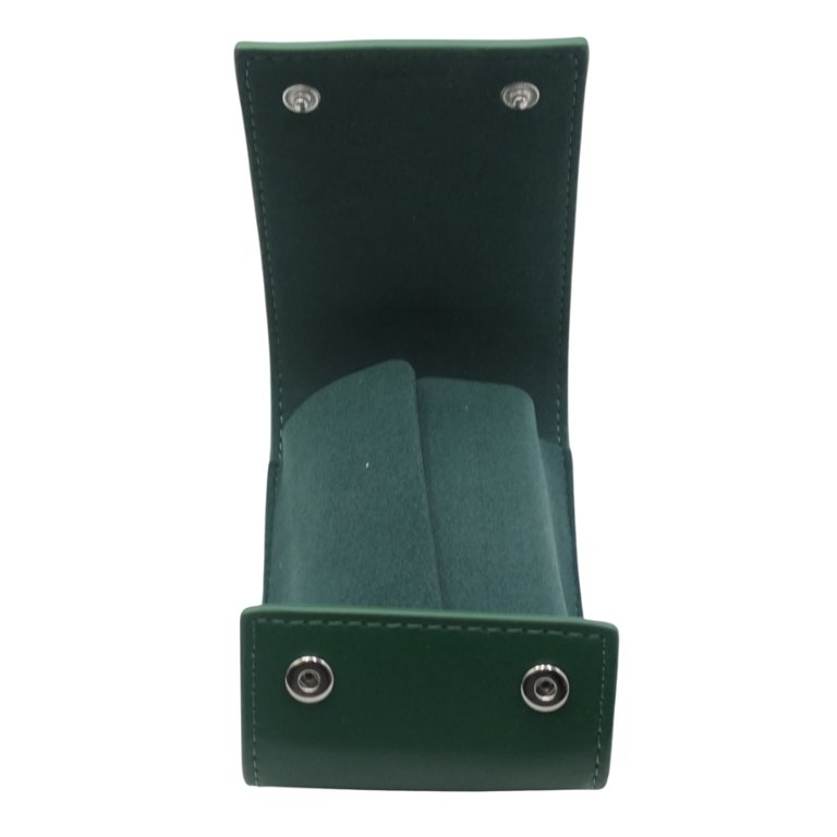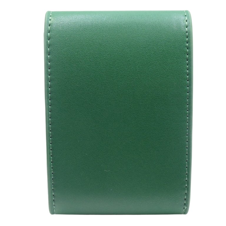 The Rolex travel case is the epitome of luxury and sophistication, designed for the discerning watch enthusiast. Crafted from premium materials, this case is enveloped in a rich, opulent green hue that immediately catches the eye. The front of the case proudly features the iconic Rolex logo, meticulously embossed to exude elegance and class.