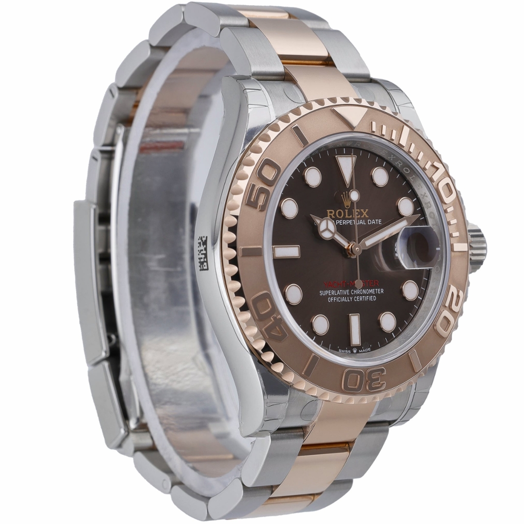 A Rolex Yacht-Master 40 model 126621, released in 2026, is a timepiece that epitomises luxury and precision. This exquisite watch features a 40mm case crafted from a harmonious blend of stainless steel and 18ct Everose gold, a proprietary rose gold alloy developed by Rolex. The combination of these materials not only enhances the watch's durability but also lends it a striking, sophisticated appearance. The watch is further distinguished by its captivating chocolate dial, which provides a rich contrast to the Everose gold hour markers and hands.