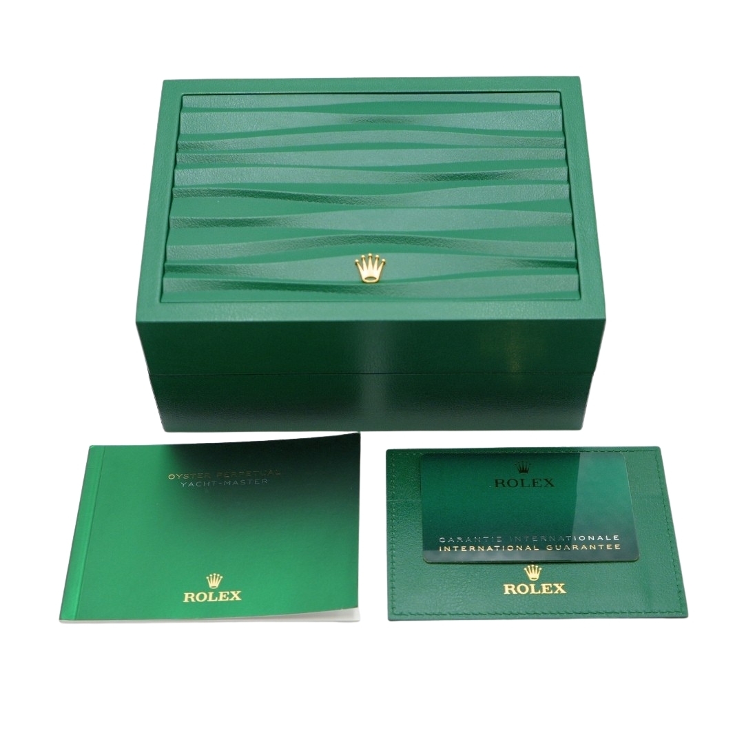 The Yacht-Master 40 is in immaculate, unworn condition, reflecting the meticulous care it has received. It comes with the original full set of paperwork, ensuring its authenticity and provenance. Additionally, it is boxed and certified, further underscoring its value as a collector's item or a luxurious addition to any wristwatch collection.