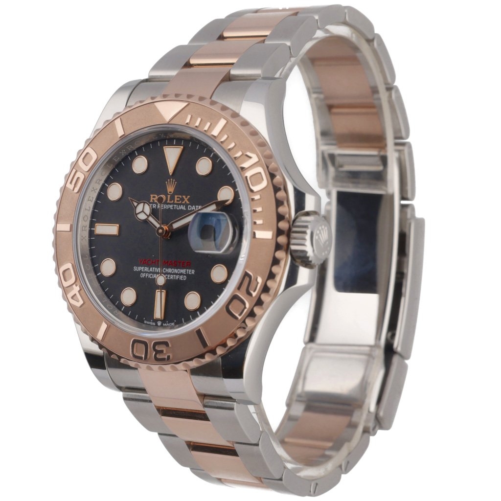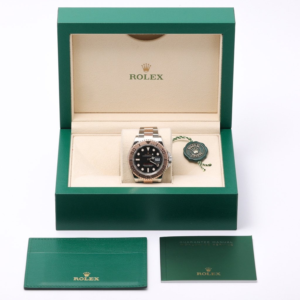 A Bi-Metal Rolex Yacht-Master Watch, model 126621, presented in immaculate condition. This striking 2020 reference pairs stainless steel with 18ct Everose gold—Rolex’s proprietary rose gold blend—for a luxurious yet sporty finish. It features an elegant black dial, a matching rose gold bezel, and the classic 40mm case. The watch is powered by the Rolex Calibre 3235 automatic movement, offering exceptional accuracy and a 70-hour power reserve and supplied with the original complete set of Rolex paperwork, presentation box, and backed by a 12-month WLC warranty.