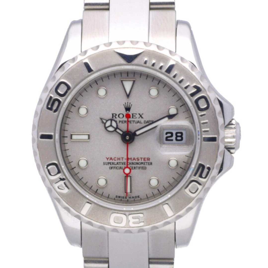 A Rolex Yacht-Master Watch, Stainless Steel with a Platinum Bezel on a Silver Dial.