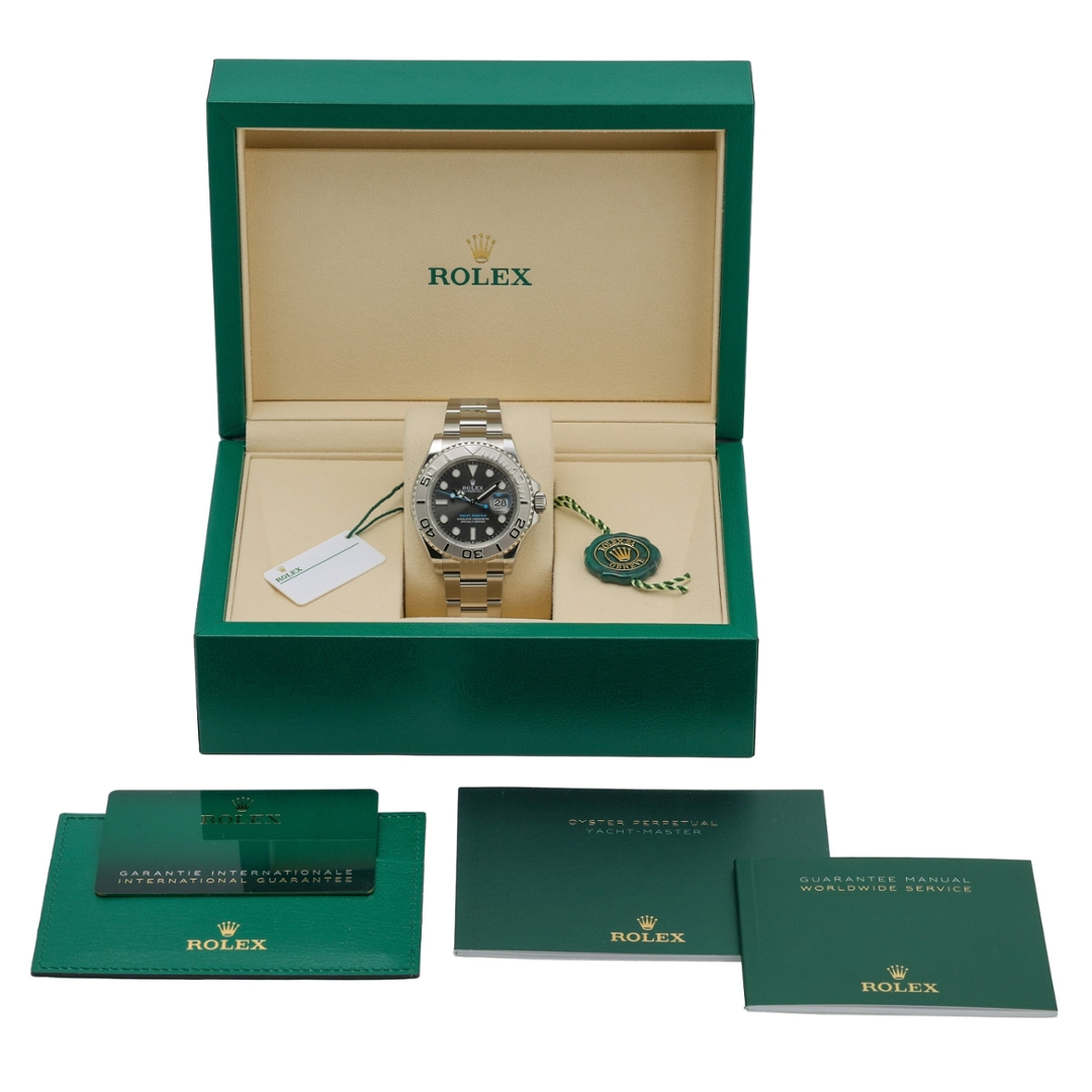 Presented in immaculate condition, this 2026 example is offered as a complete set with its original Rolex box and paperwork, and it retains the Rolex manufacturer's warranty valid until 2031. The Yacht-Master 126622 remains a highly desirable modern Rolex sports reference, with the Rolesium combination and slate dial continuing to attract strong demand from collectors and investors alike.