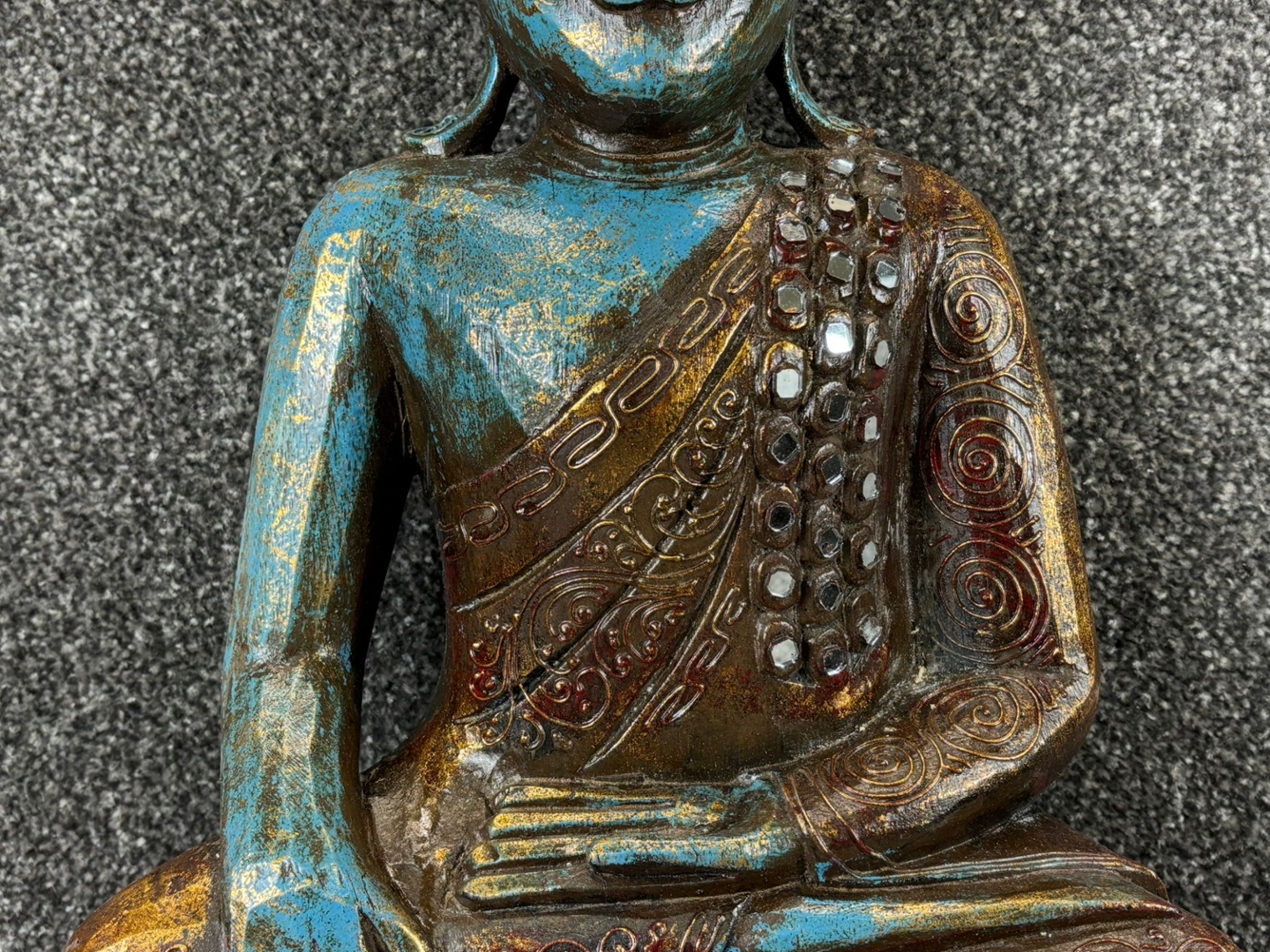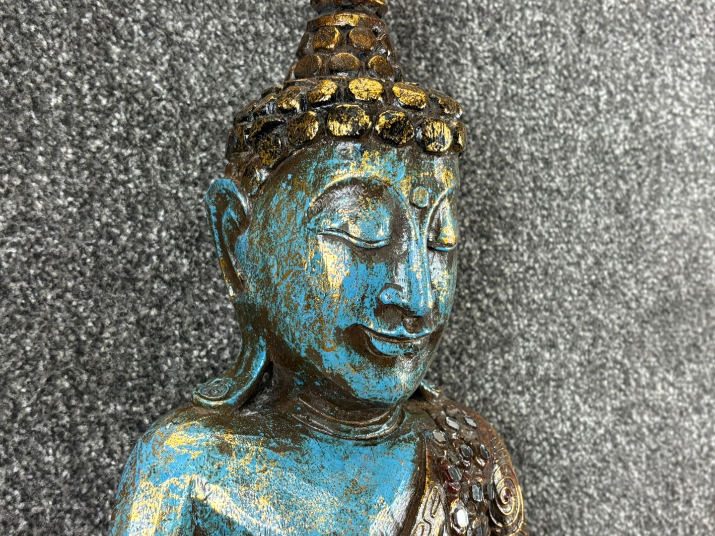 - > Sculpture of a Blue Sitting Buddha