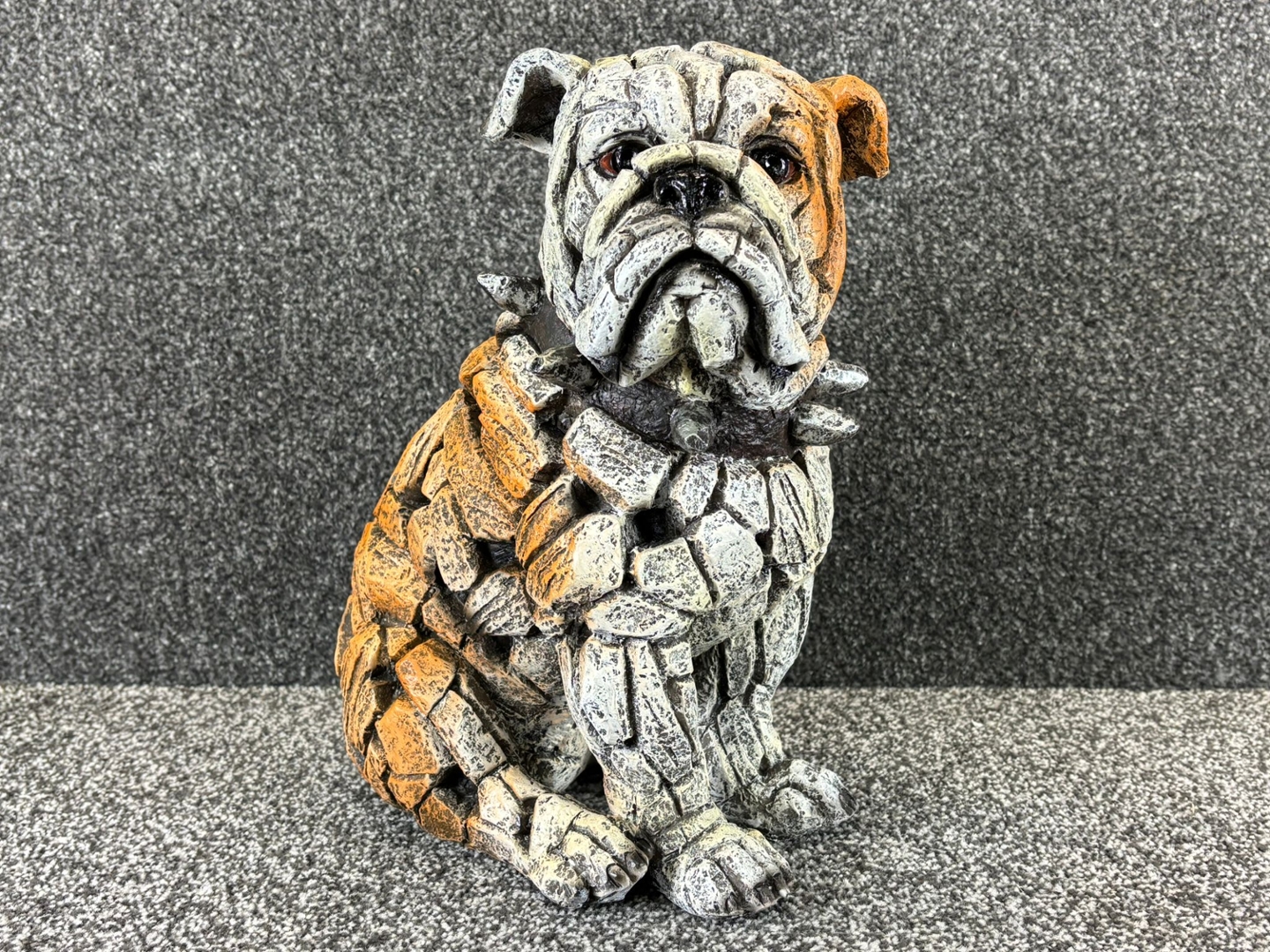 Measuring approximately 35cm in height, 26cm in width, and 21cm in depth, this bulldog is a substantial size, making it an ideal statement piece for display. The spiked collar detail adds an extra touch of attitude and strength, emphasising the breed’s tough yet endearing personality.