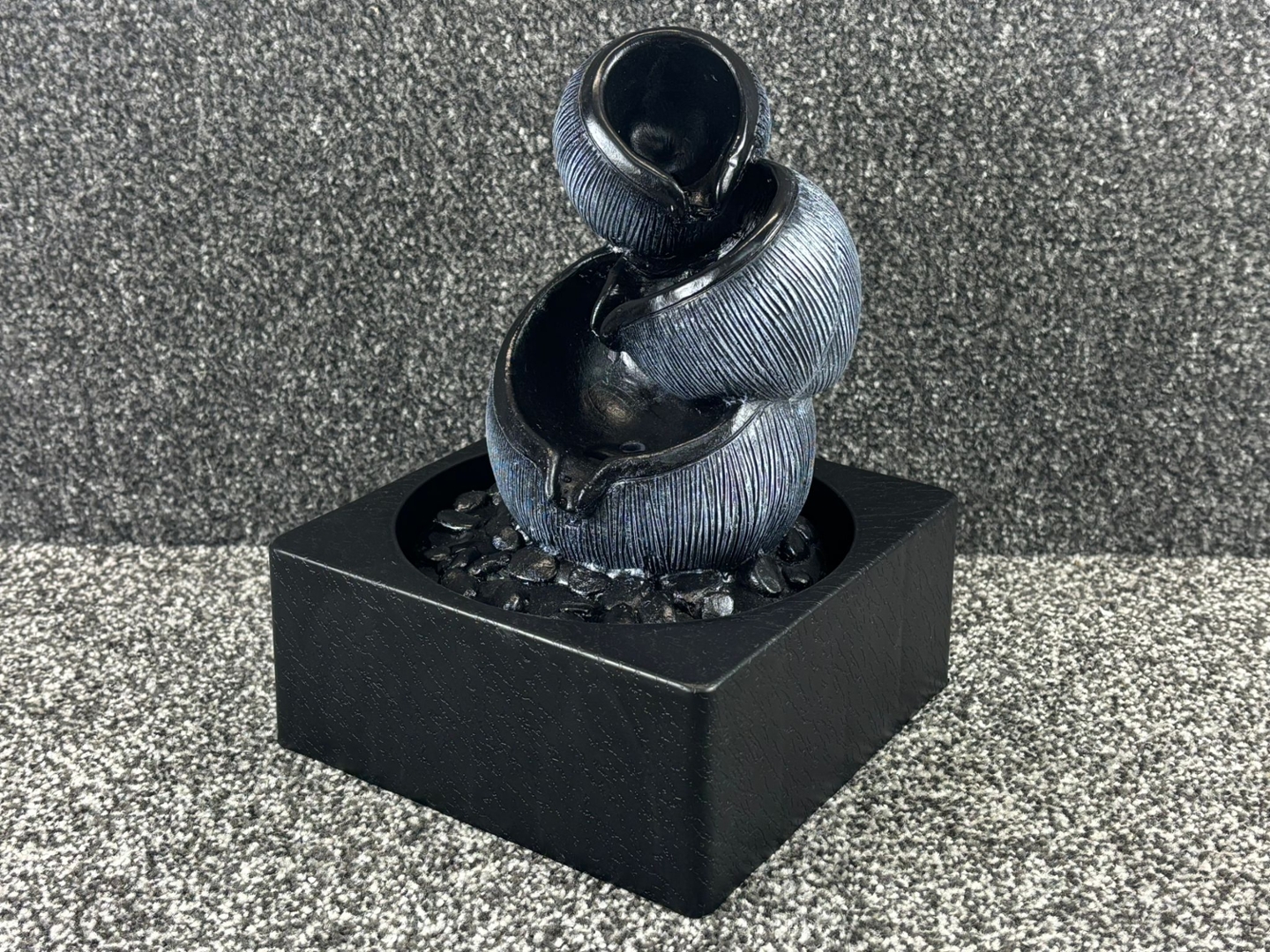 Measuring approximately 24cm in height, 18cm in width, and 18cm in depth, the Serenity Bowls Fountain is compact enough for tabletops while still making a striking visual statement. It is ideal for enhancing any setting, whether placed in a living room, office, or meditation space.