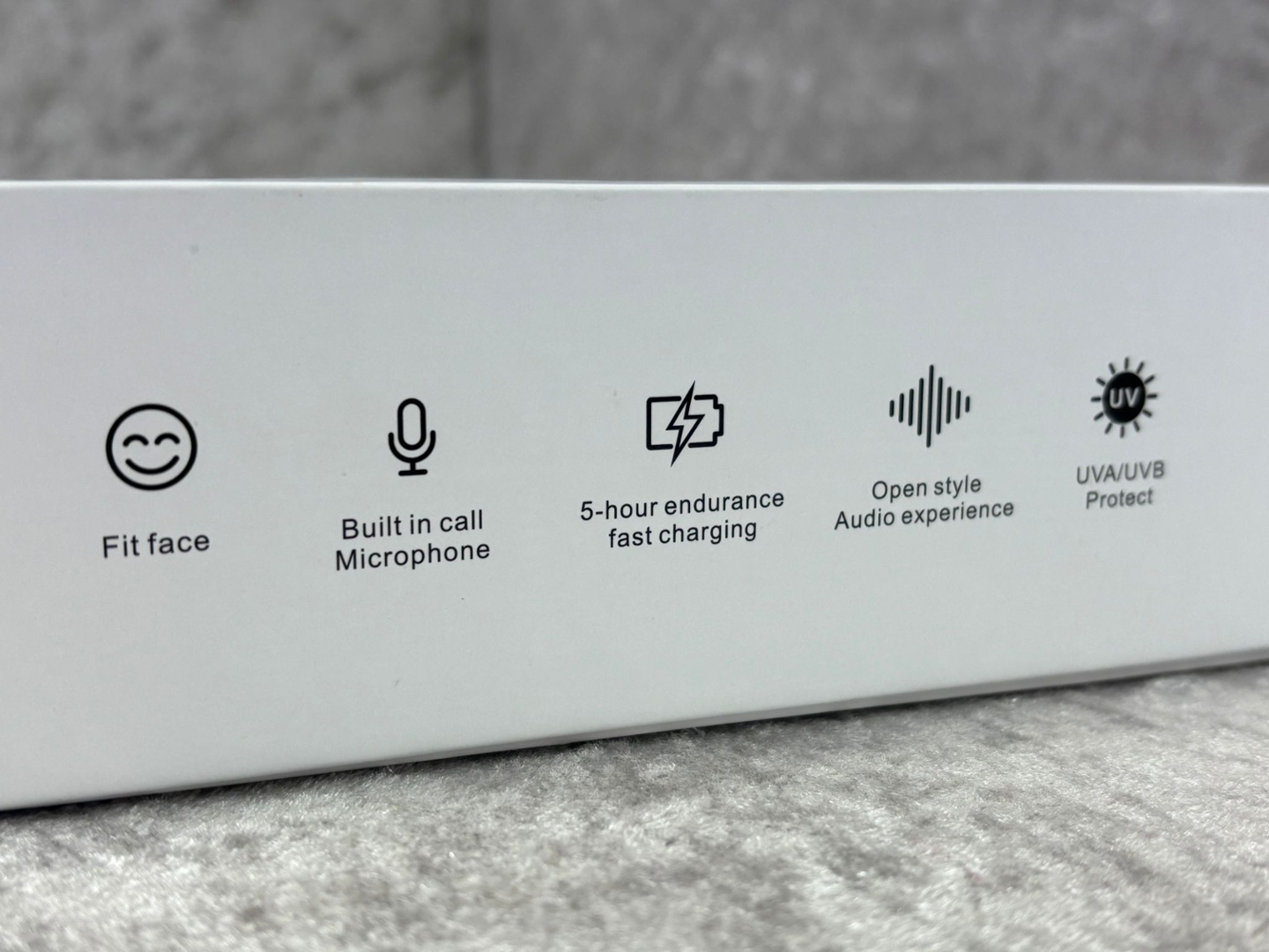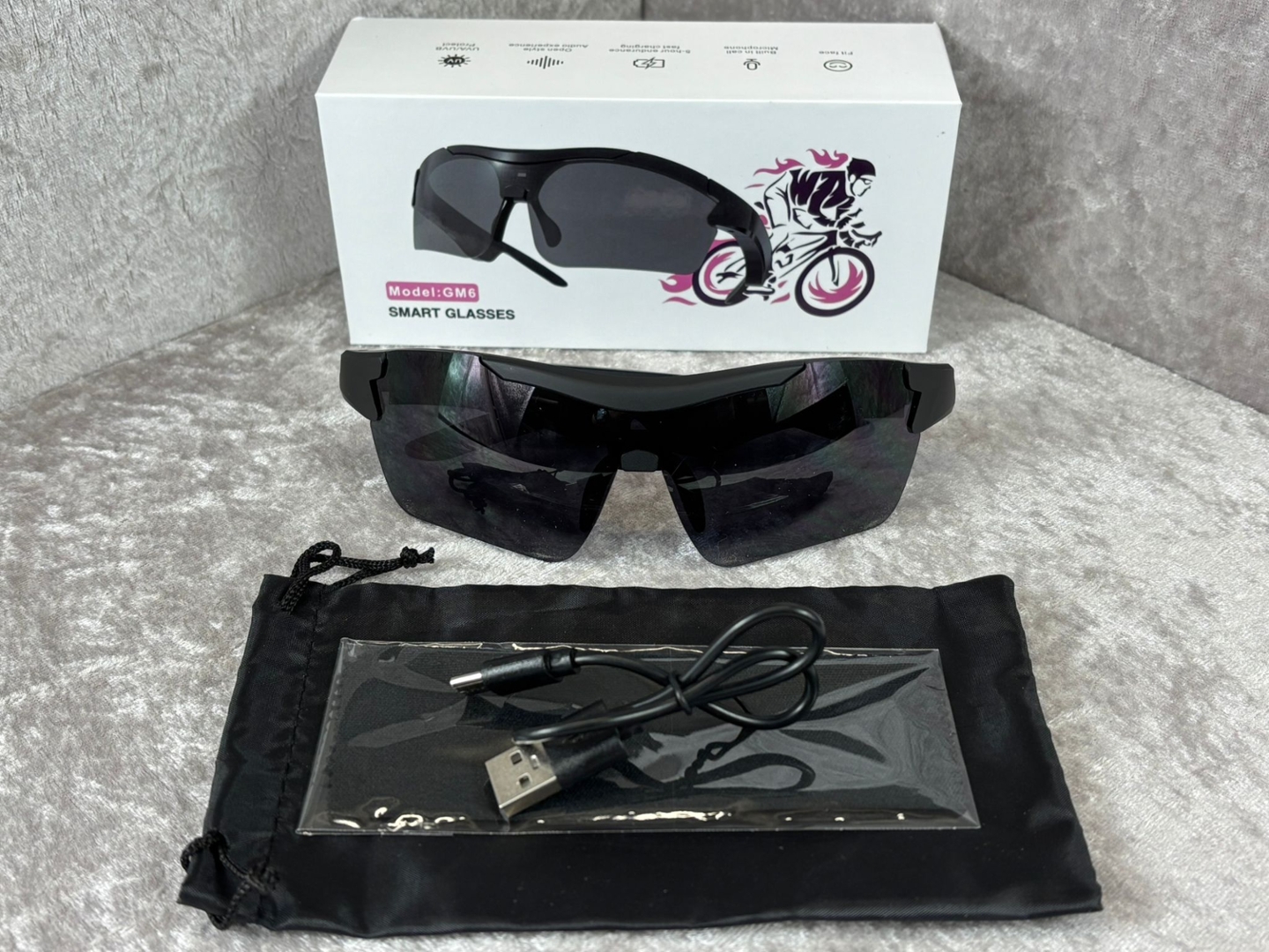 A brand new, unused and boxed pair of smart sports glasses, feauturing hands-free audio with built-in call functionality, an open-ear audio experience, integrated microphone, and intuitive controls.