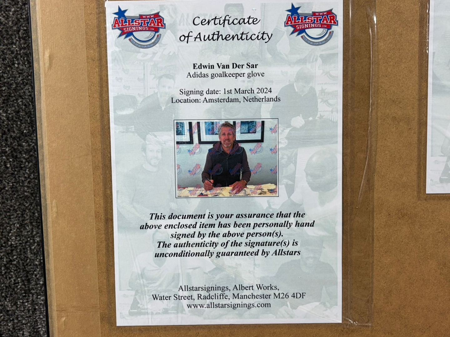 Measuring approximately 87cm in height and 67cm in width, this exceptional collector’s piece is a tribute to Manchester United’s legacy of goalkeeping greatness. A rare and distinguished item that will command admiration in any sports memorabilia collection.