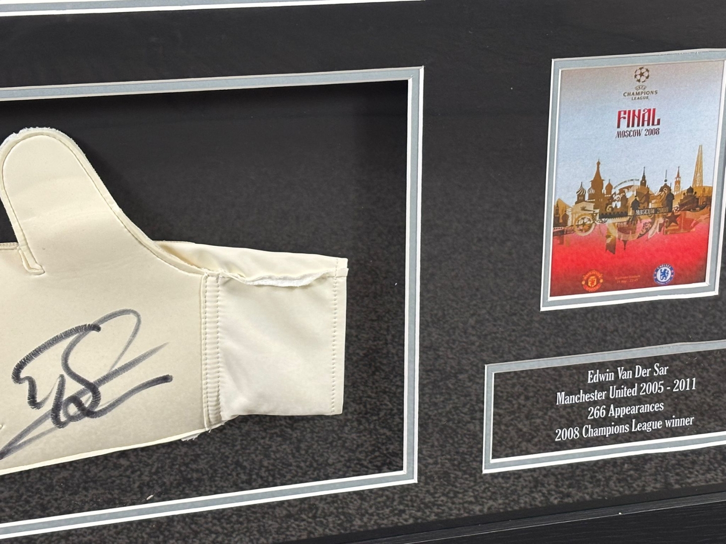 Expertly arranged within a premium black frame, the presentation includes career highlights and commemorative imagery celebrating their historic triumphs in 1968, 1999, and 2008. Each glove represents a defining moment in Manchester United’s illustrious history, capturing the spirit, leadership, and brilliance of these world-class shot-stoppers.