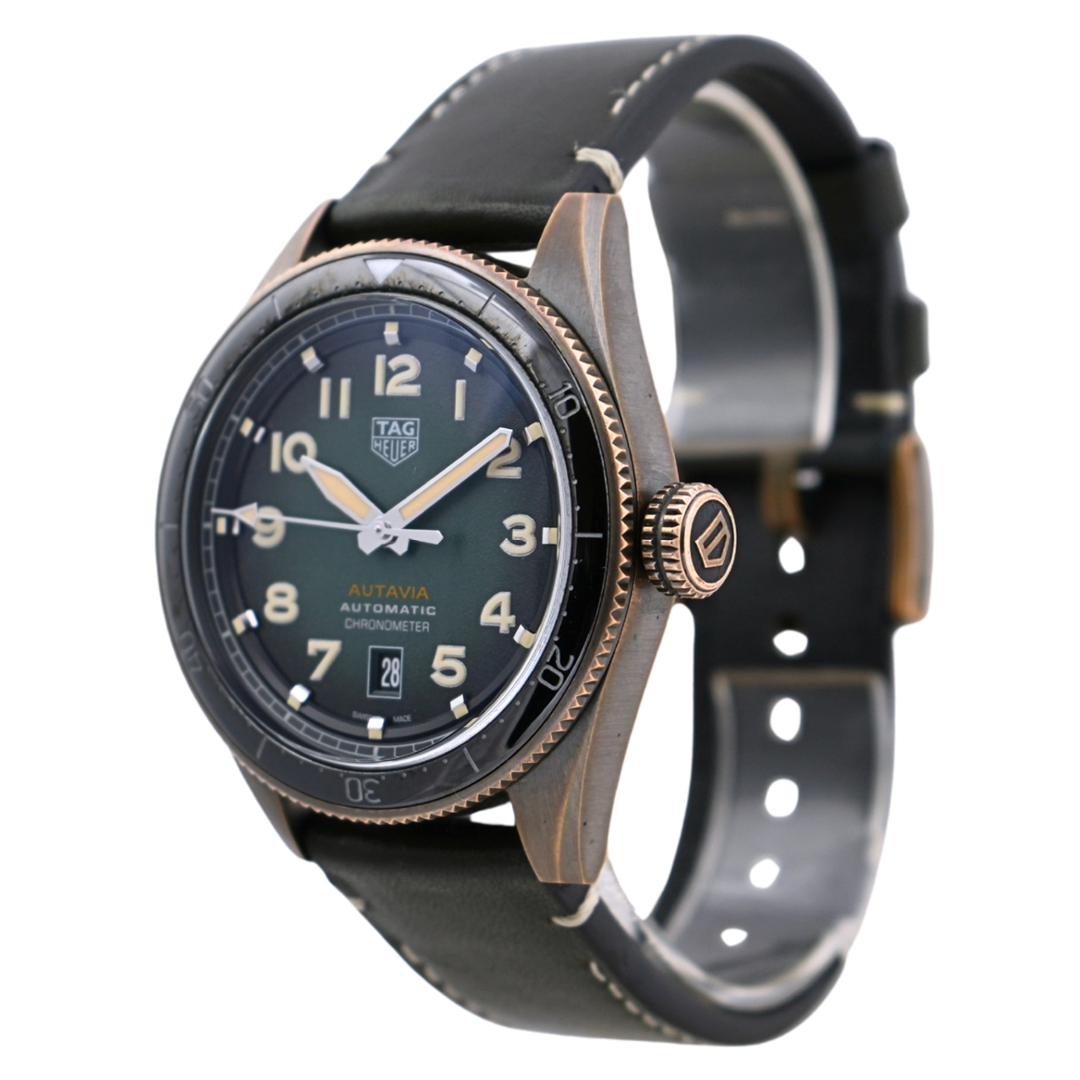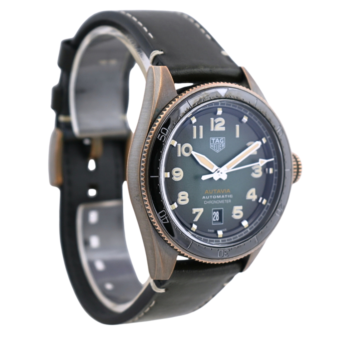 A Tag Heuer Autavia that continues to impress, this reference WBE5190.FC8268 stands out with its bronze case and green dial. The combination of a heritage-inspired design and contemporary chronometer-certified performance has made the Autavia line increasingly sought after by enthusiasts looking for pieces with long-term investment potential. Its 42mm bronze case develops a unique patina over time, ensuring that every example evolves differently and adding significantly to its desirability among collectors.