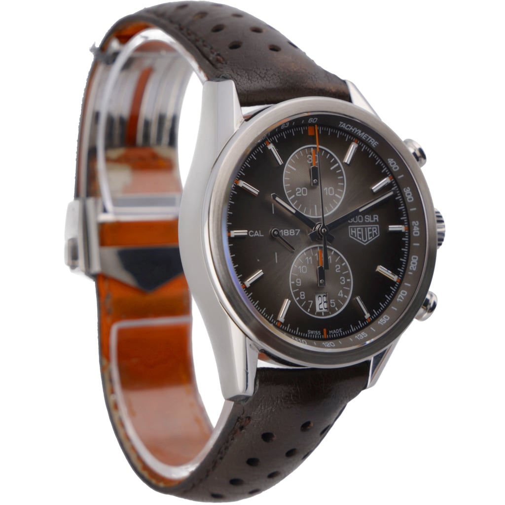 A Tag Heuer Carrera 300 SLR Watch, Brown Leather Strap with a Stainless Steel Case & Clasp and a Grey Dial