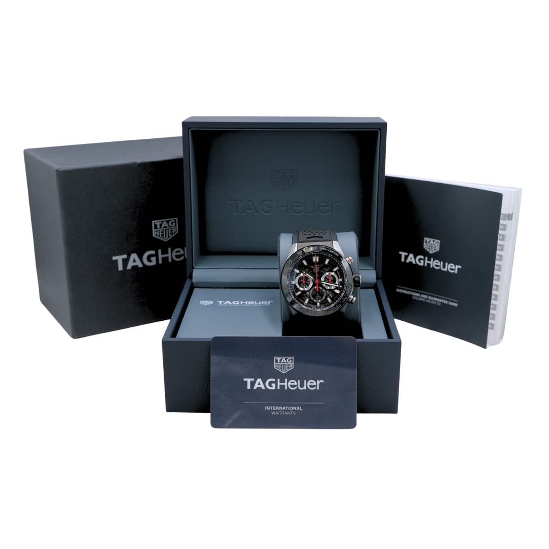 Dated to 2019, this watch remains in good condition and is supplied with its original Tag Heuer paperwork, presentation box, and a 12-month WLC warranty for additional assurance. The Carrera Heuer 02 stands as a testament to Tag Heuer's enduring connection to motor racing, offering both functionality and striking design in equal measure—a superb addition to any collection.