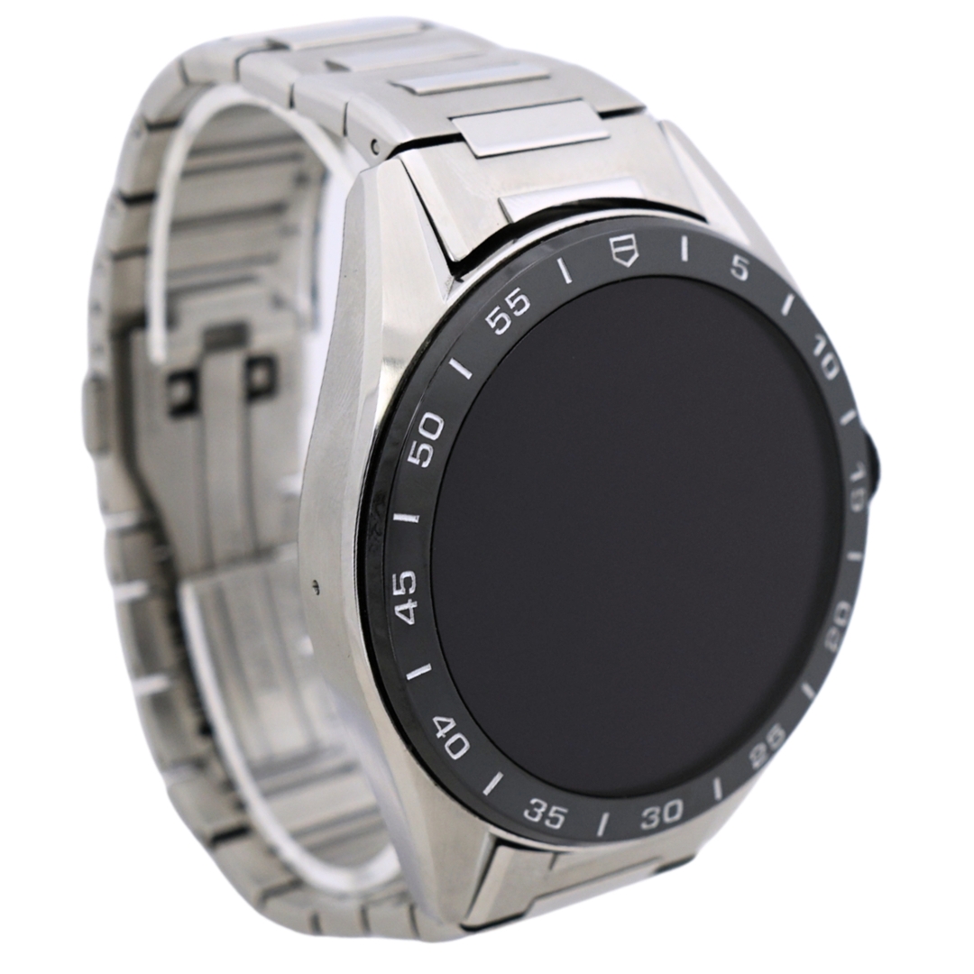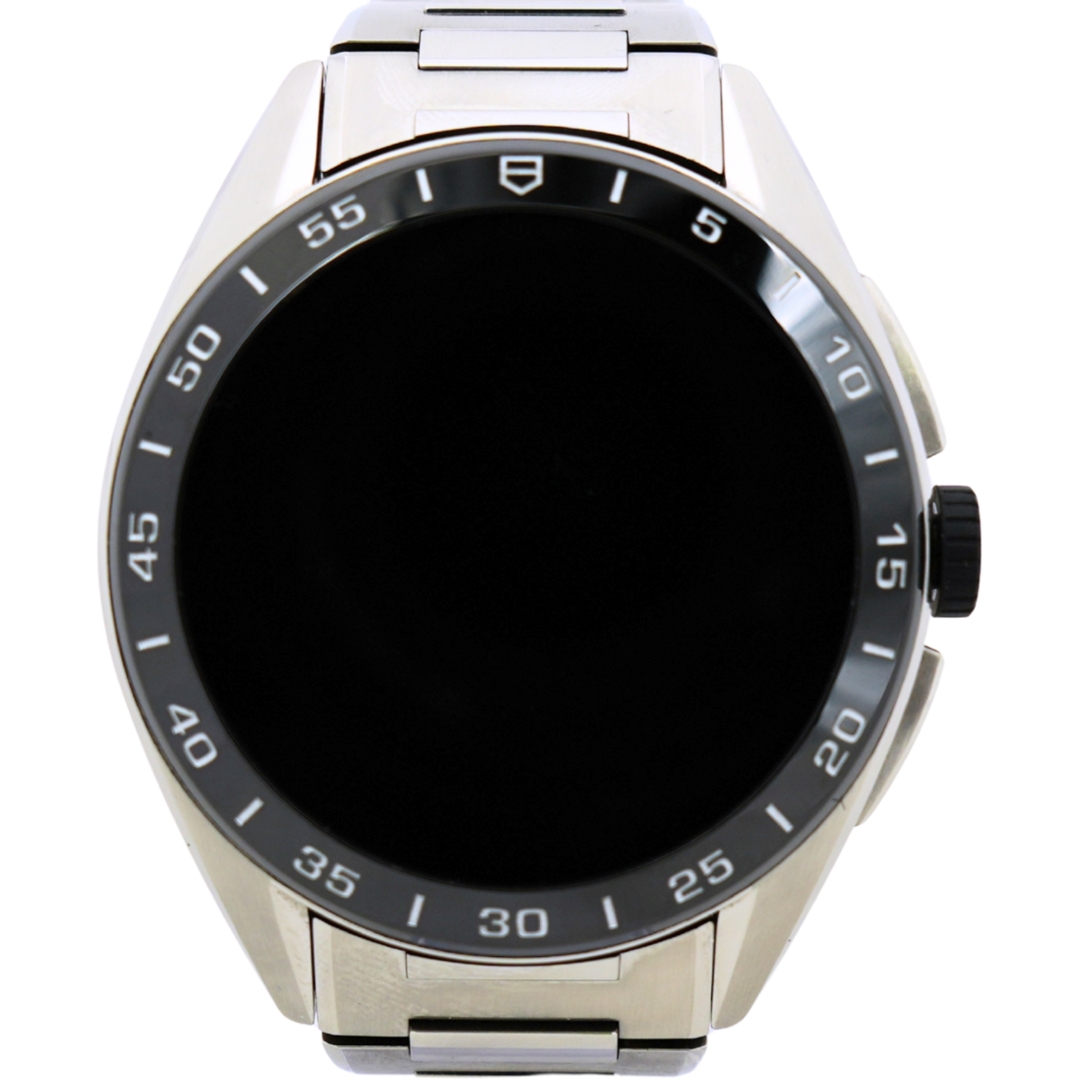 A Tag Heuer Connected Watch, Stainless Steel Case & Clasp and a Black Bezel.