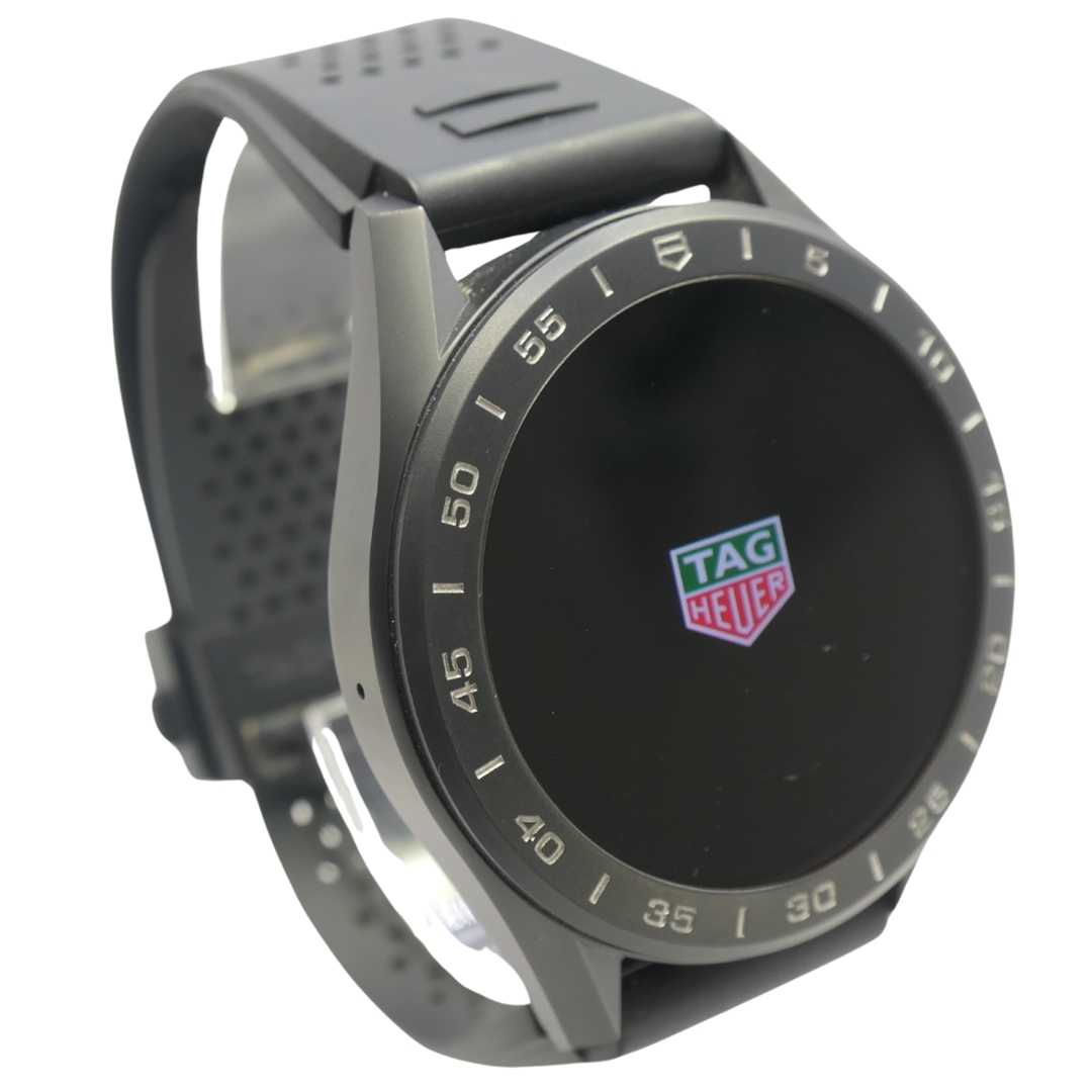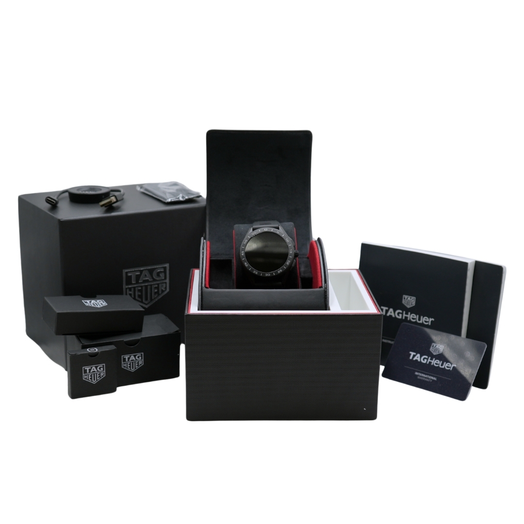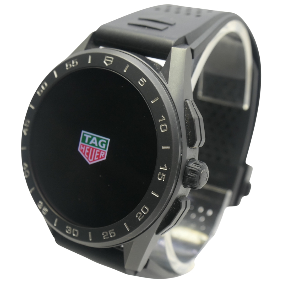 A Tag Heuer Connected Watch, Black Rubber Strap with a Titanium Case and a Black Ceramic Bezel