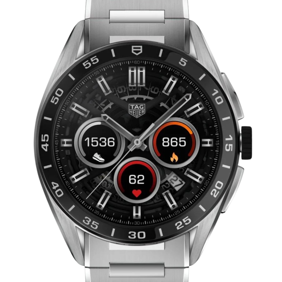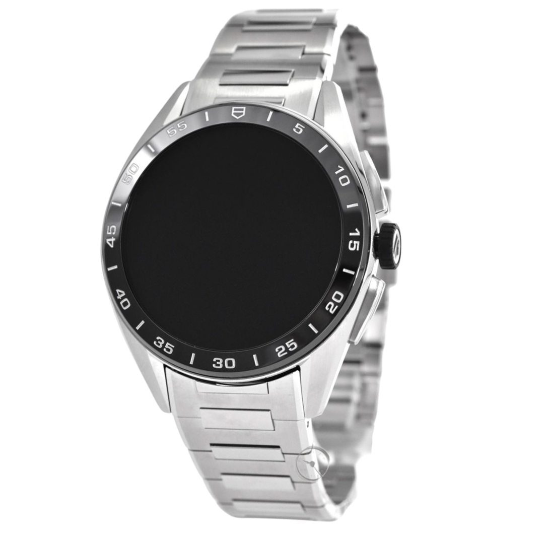 A Tag Heuer Connected Watch, Stainless Steel Case & Clasp and a Black Bezel.
