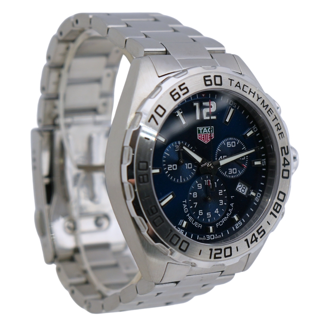 A Tag Heuer Formula 1 Chronograph Watch, Stainless Steel with a Blue Dial.