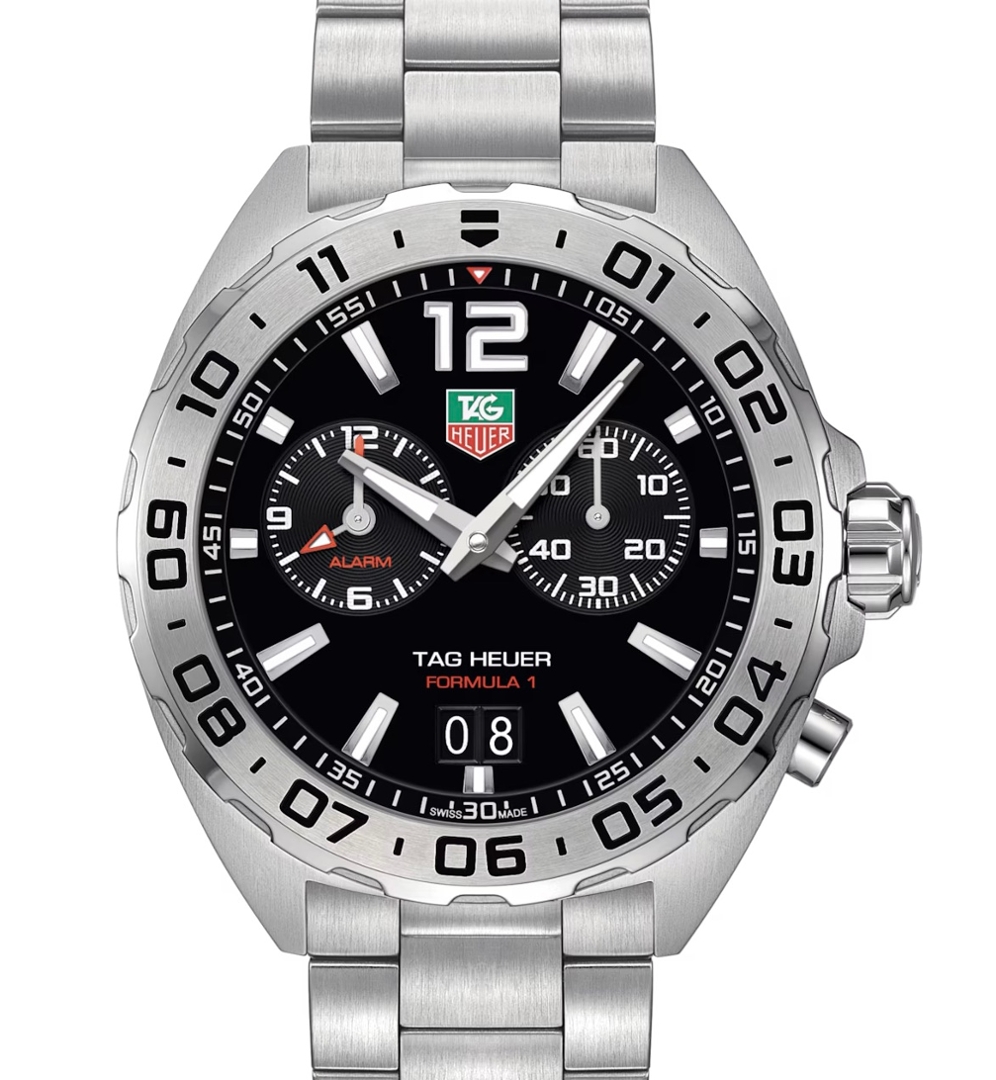 A Tag Heuer Formula 1 Watch, Stainless Steel with a Black Dial.