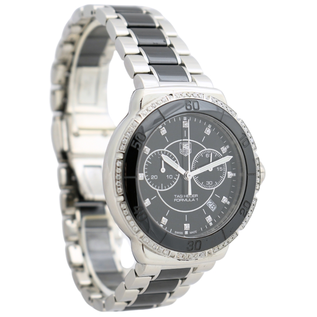 A Tag Heuer Formula 1 Watch, Stainless Steel with an Original Diamond Bezel on a Black Dial with Original Tag Heuer Diamond Numerals