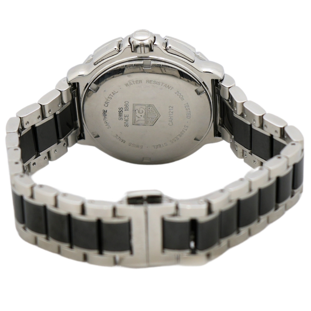 A Tag Heuer Formula 1 CAH1212 is a striking blend of luxury and performance, offering a bold, elegant design that makes a statement. This model, crafted from stainless steel, features an original diamond bezel, adding a touch of luxury to the sport-inspired Formula 1 series. The black dial is complemented by original Tag Heuer diamond numerals.