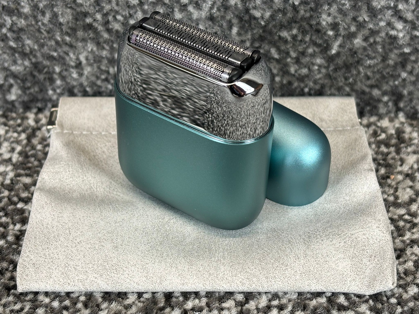 A brand new Teal All-Metal Mini Electric Shaver with High-Speed Motor & Washable Design.