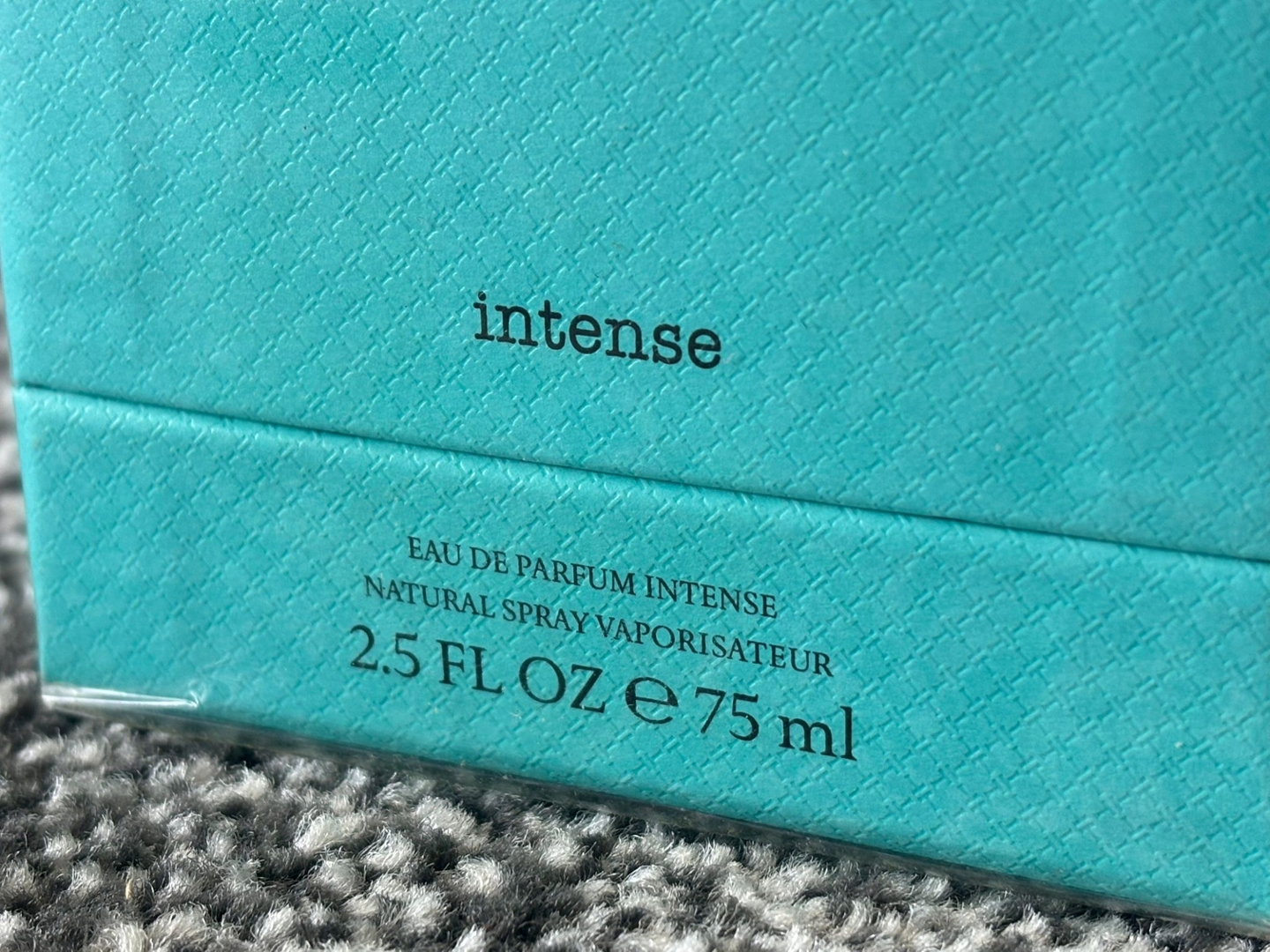 A 75ml bottle of Tiffany & Co Intense Eau De Parfum, presented in its original presentation box and offering a richer, more expressive interpretation of the signature Tiffany fragrance. Refined and elegant, this scent reflects the timeless sophistication and modern luxury associated with the Tiffany & Co name.