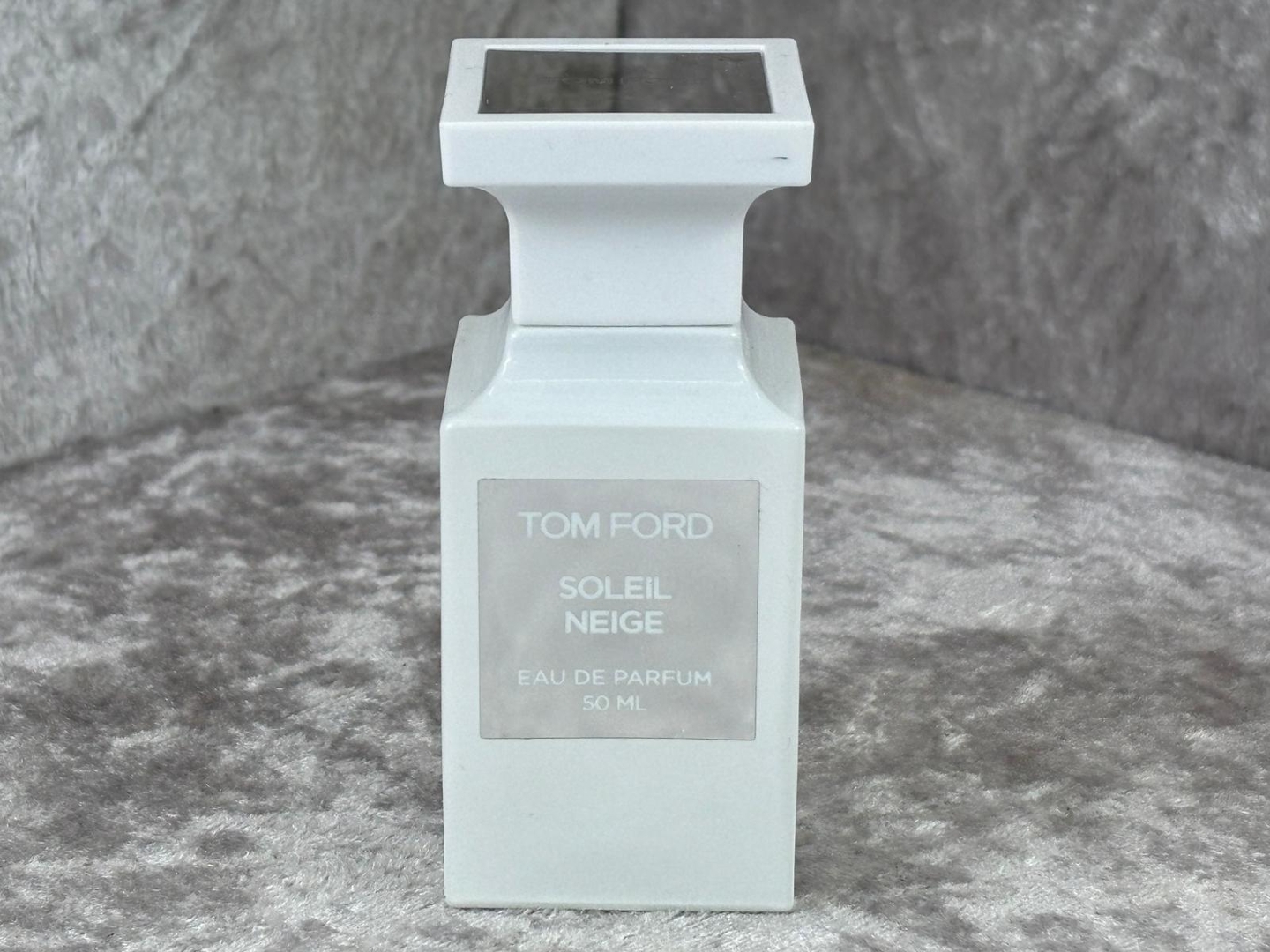 A 50ml bottle of Soleil Neige Eau De Parfum by Tom Ford. This luminous Private Blend fragrance captures the contrast of bright winter sun against fresh alpine snow, blending crisp florals with creamy warmth. Elegant and radiant, it delivers a refined presence that feels both cool and enveloping from the very first spray.