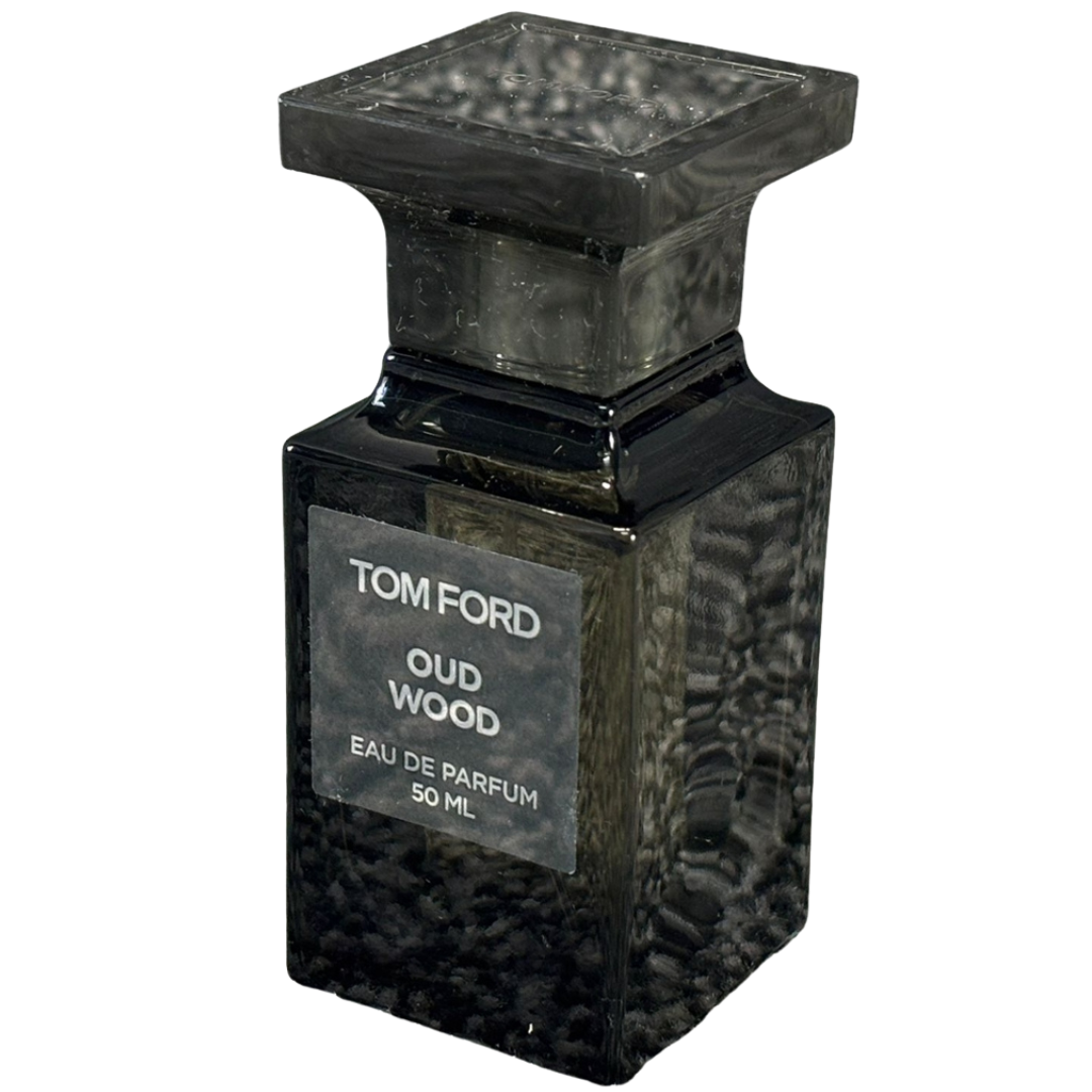 A 50ml bottle of Tom Ford Oud Wood Eau De Parfum, one of the most celebrated creations from the luxury fashion and fragrance house of Tom Ford. Oud Wood is renowned for its refined approach to oud, presenting depth and warmth in a smooth, contemporary style.