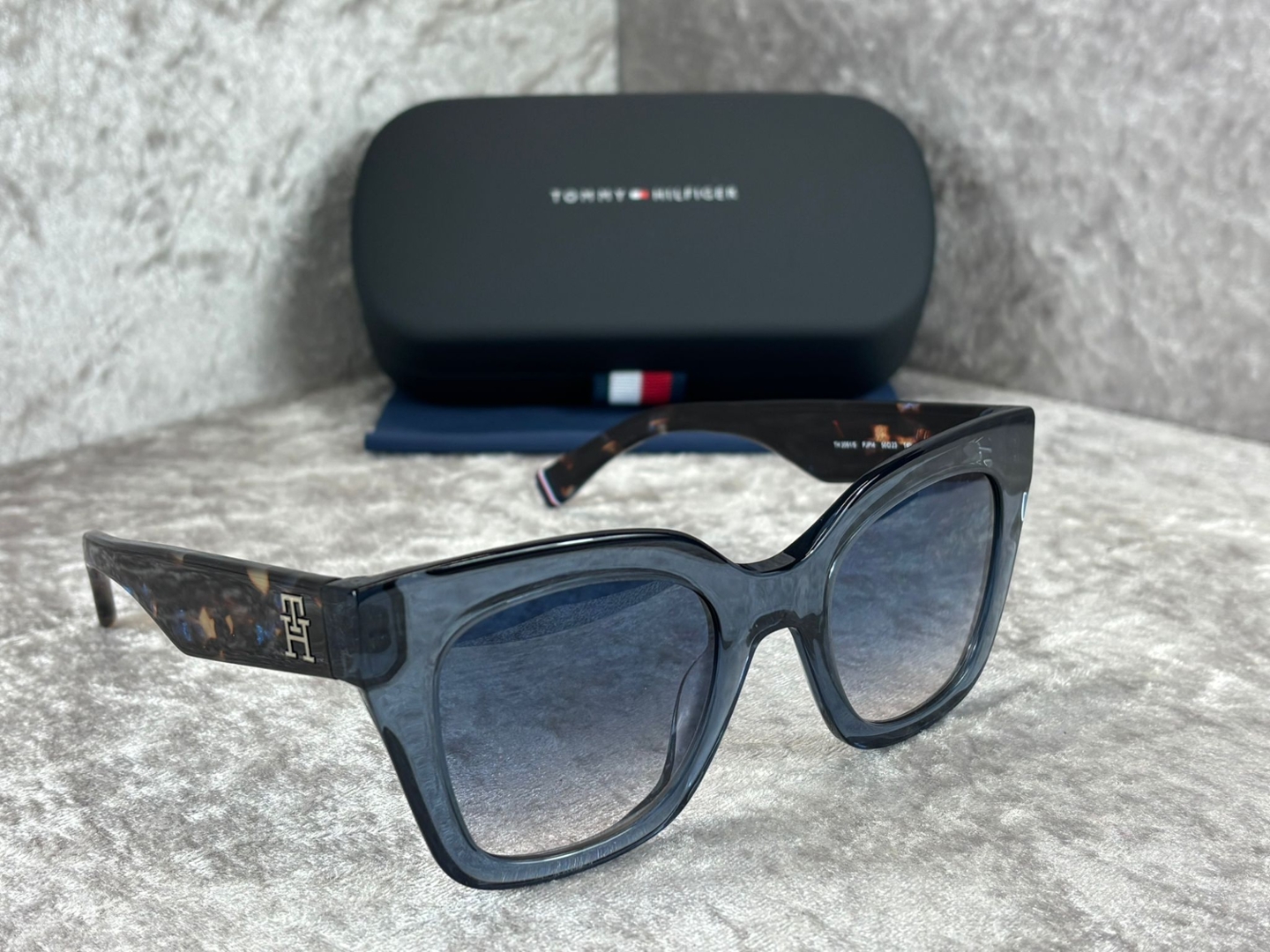 A Brand new and unused, these Tommy Hilfiger Square sunglasses offer a bold yet refined silhouette with contemporary appeal. The structured square frame in a rich blue tone creates a confident, fashion-forward look, perfectly complemented by gradient tinted lenses that add depth and sophistication. Designed to flatter a variety of face shapes, this statement style blends everyday wearability with standout design.