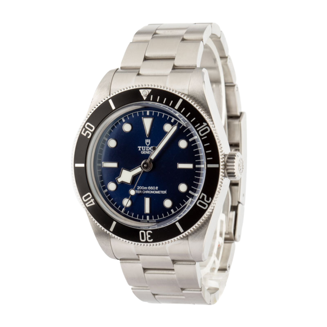 A Tudor Black Bay 68 Watch, Stainless Steel with a Black Bezel on a Blue Dial