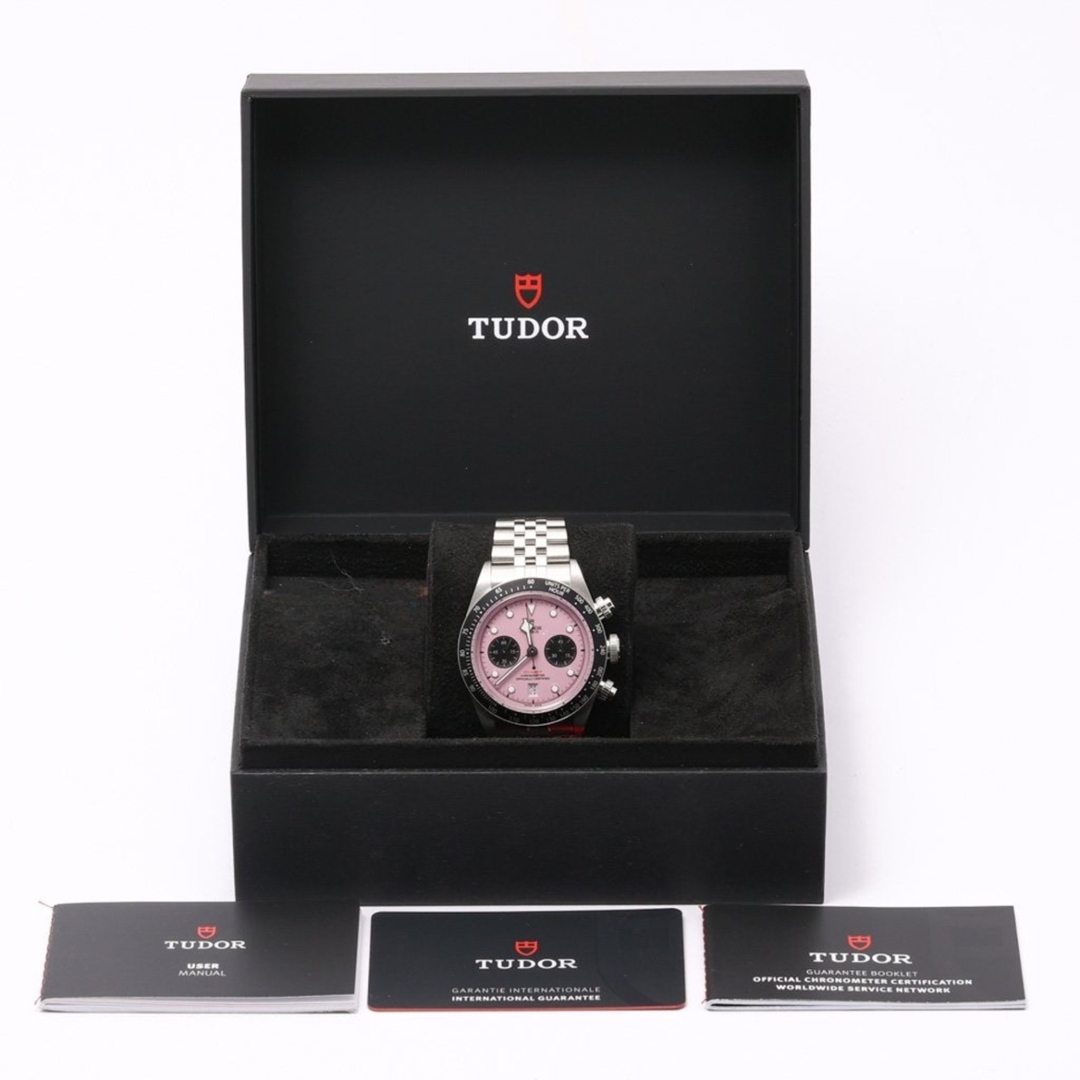 A Tudor Black Bay Chrono Watch, Stainless Steel with a Black Bezel on a Pink Dial