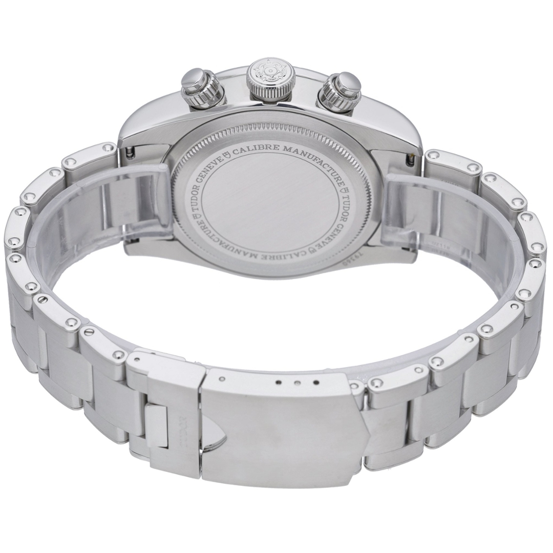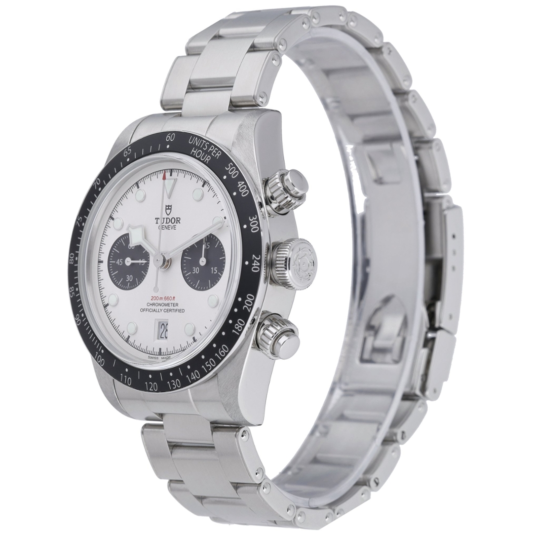 A Tudor Black Bay Chrono Watch, Stainless Steel with a Black Bezel on a White Dial