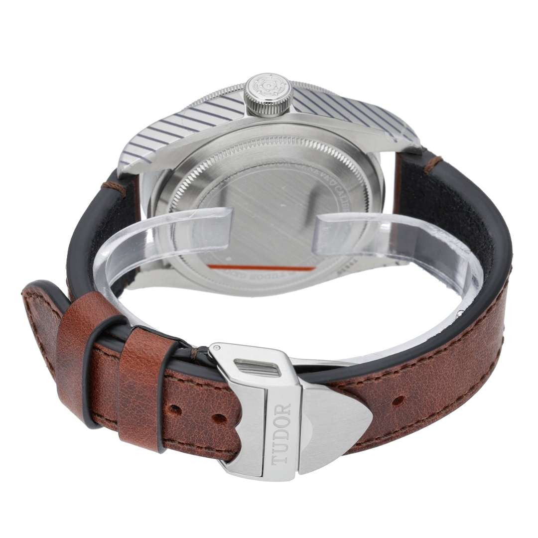 A Tudor Black Bay GMT Watch, Brown Leather Strap with a Stainless Steel Case & Clasp and a Blue/Red Bezel on a Black Dial