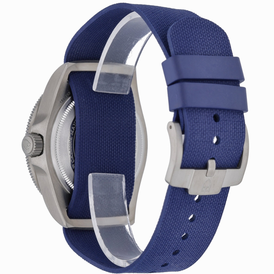 A Tudor Pelagos FXD Watch, Blue Fabric Strap with a Titanium Case & Clasp on a Blue Bezel & Dial.