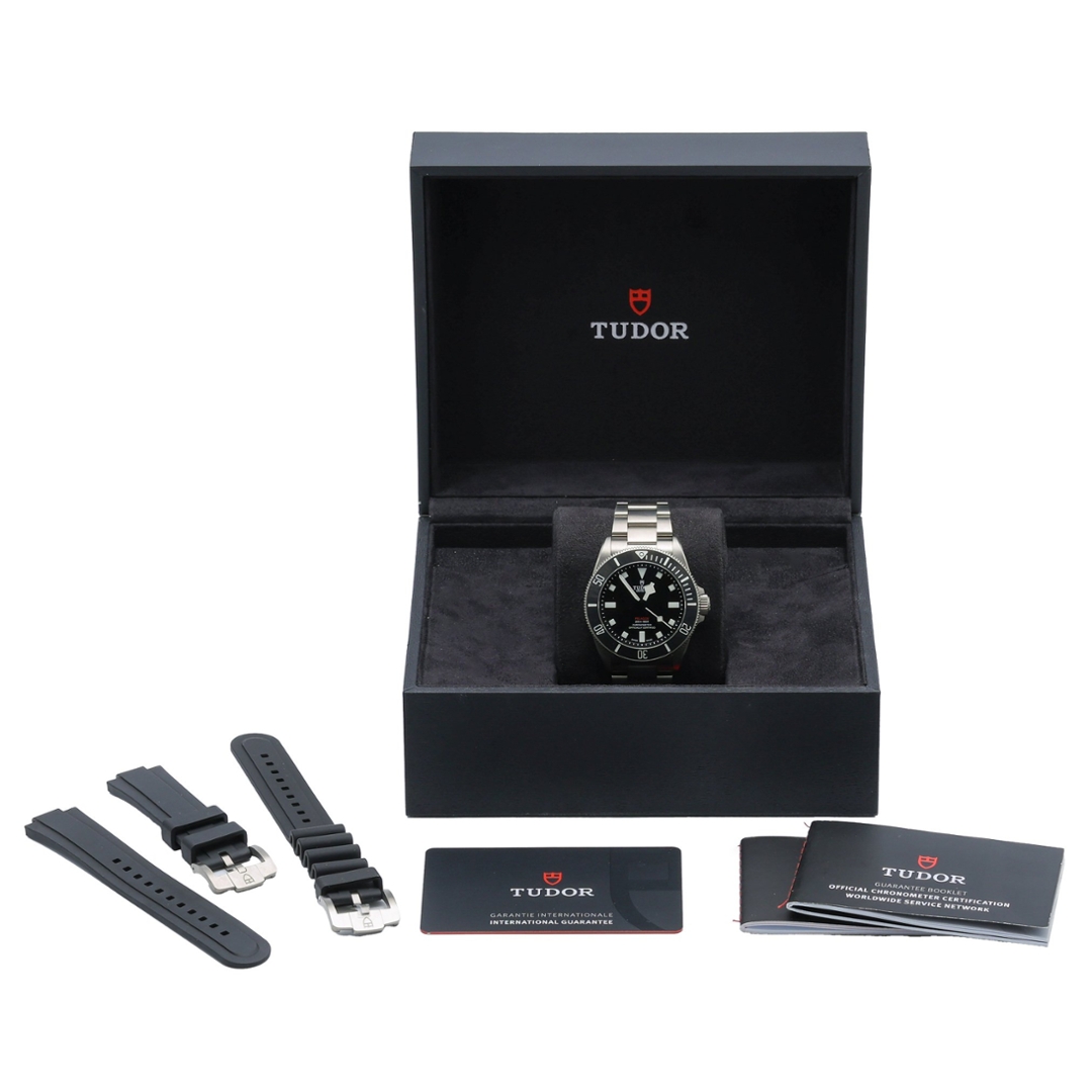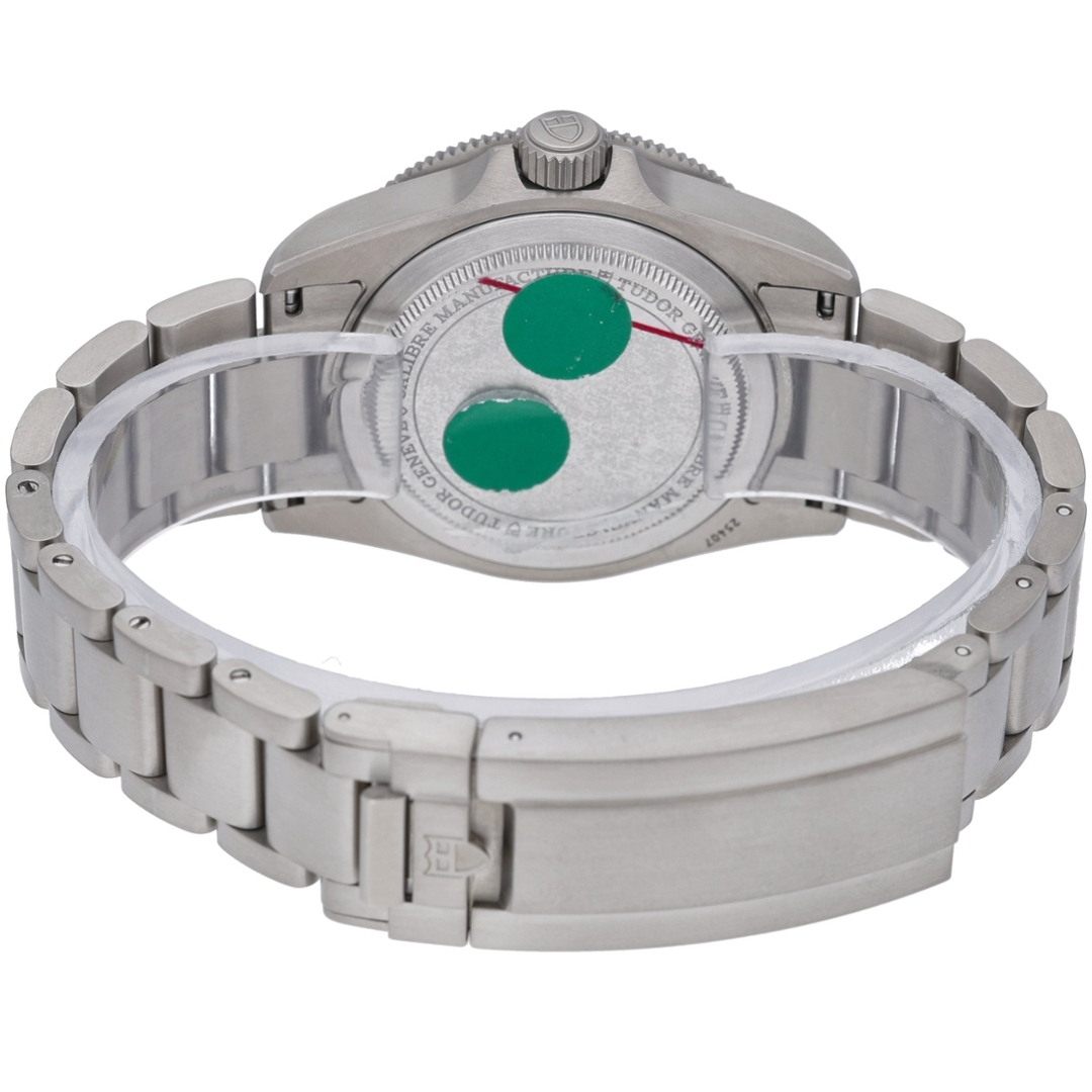 The matte black dial features luminous hour markers and Tudor’s distinctive snowflake hands, ensuring superb legibility in all lighting conditions. The unidirectional titanium bezel with a ceramic insert enhances the watch’s professional diving capabilities, while the satin finish on the case and bracelet provides a modern, tool-watch aesthetic that is both refined and functional.