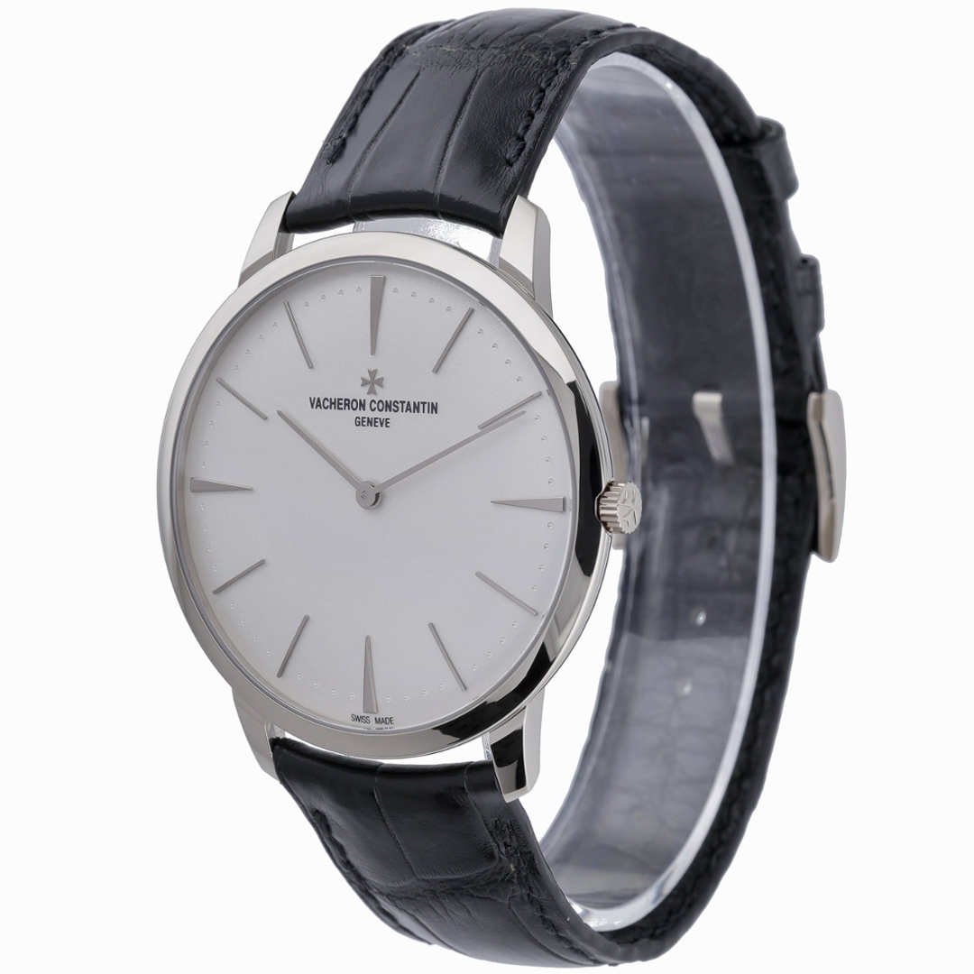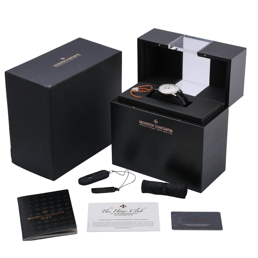 The champagne dial is beautifully understated, featuring slender applied baton hour markers and dauphine hands, delivering a pure and balanced aesthetic true to Vacheron Constantin’s classical design language.