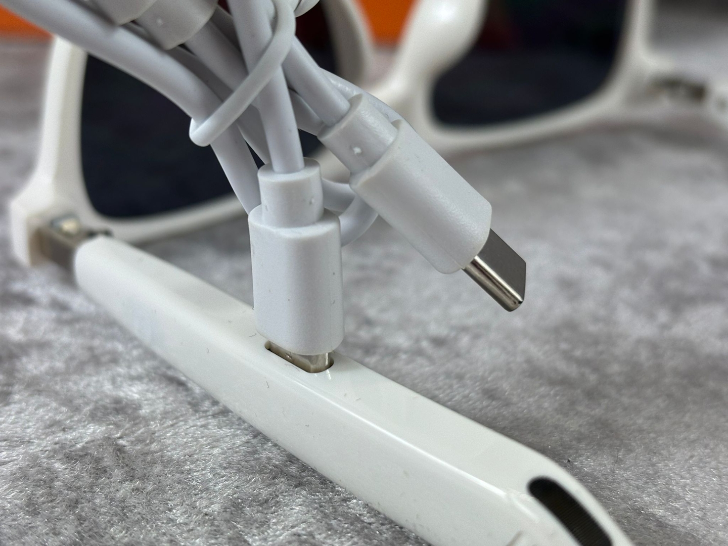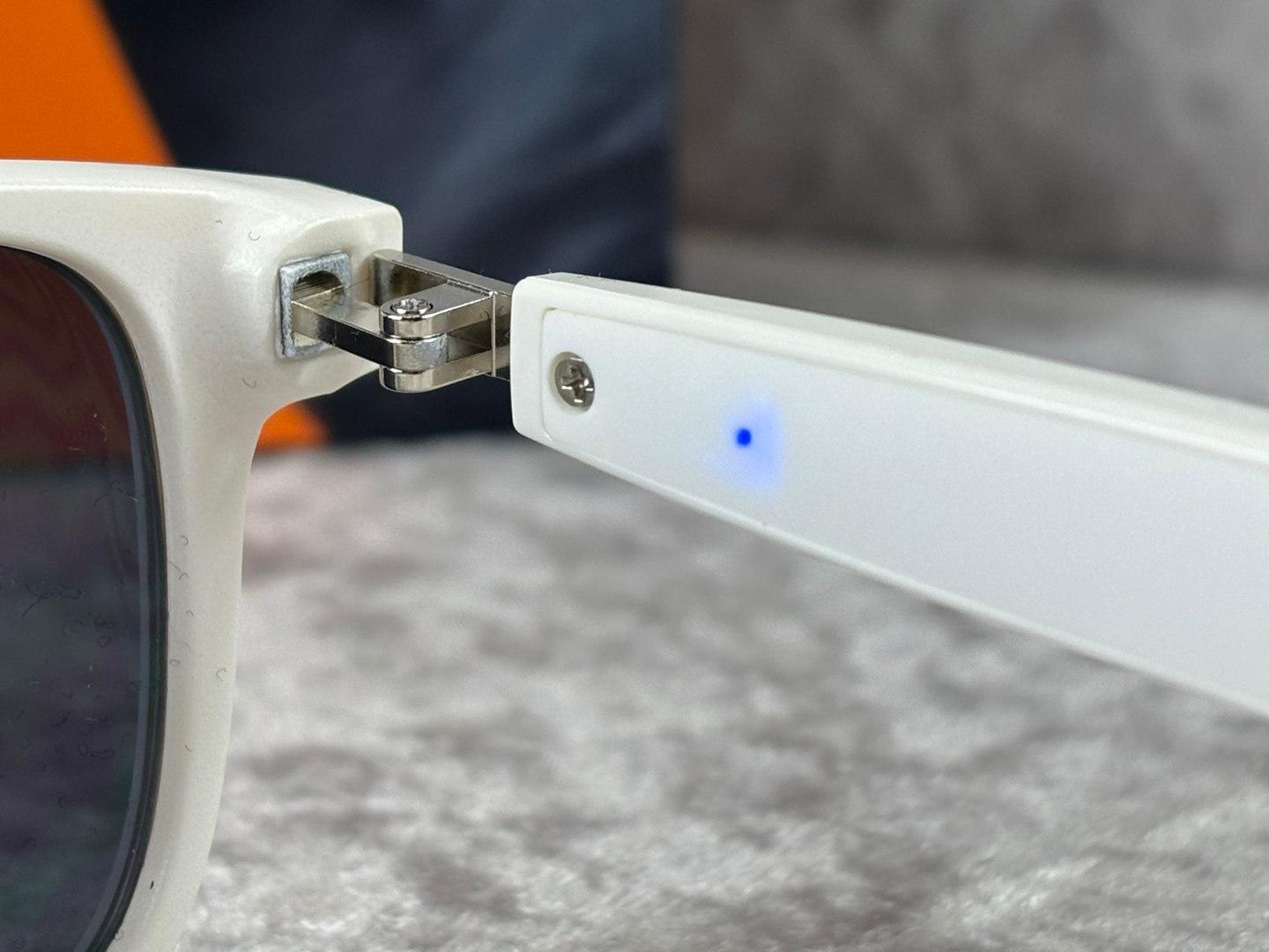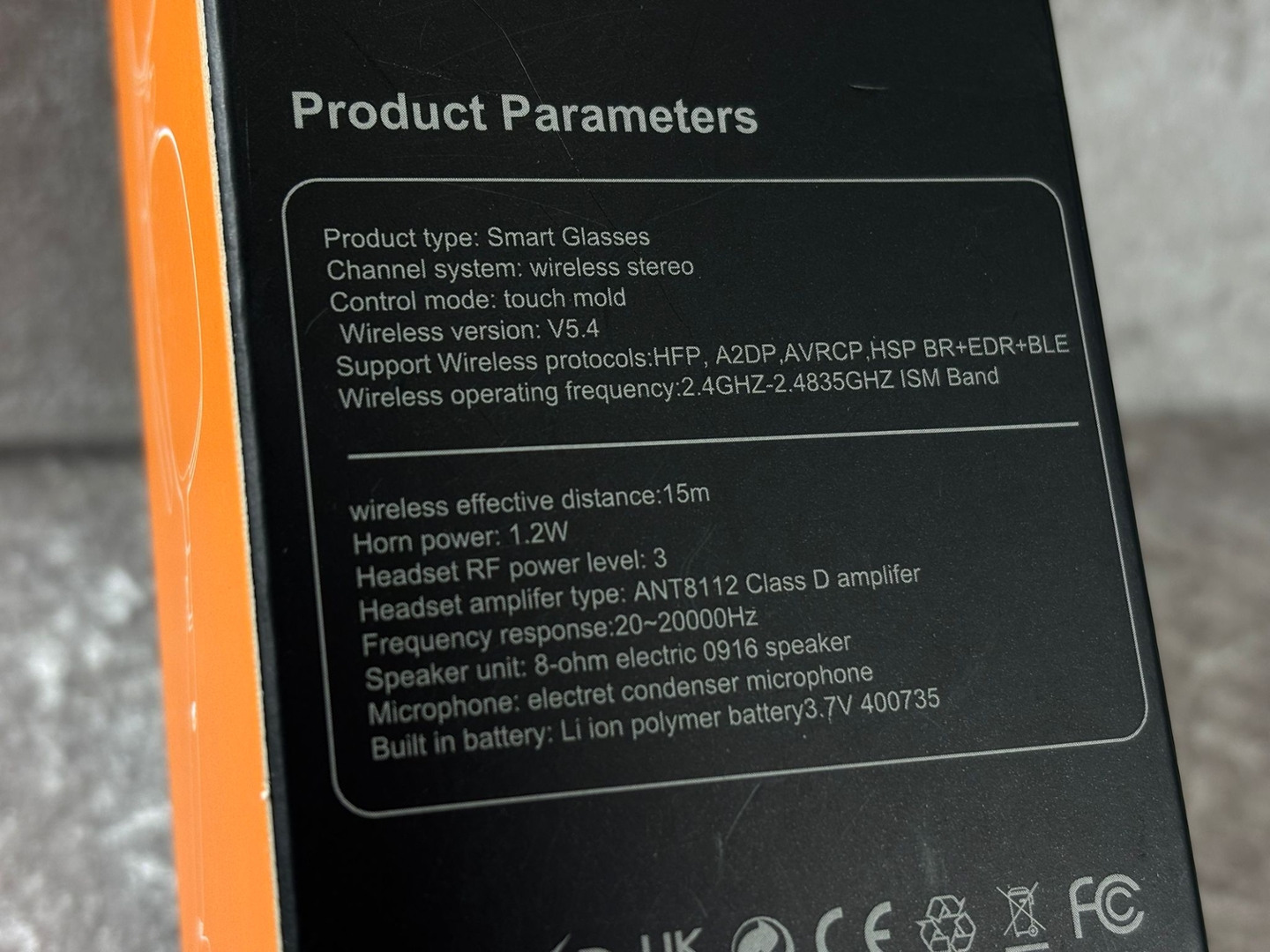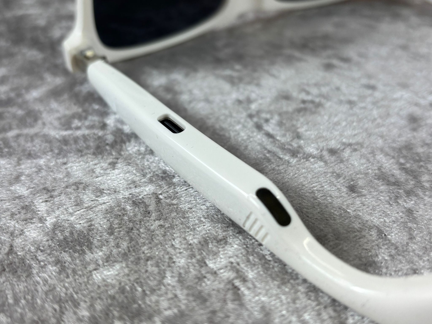 A brand new, unused and boxed pair of white smart glasses combining a classic sunglass design with hands-free audio, built-in call functionality, open-ear sound, and intuitive controls for everyday convenience and on-the-go use.