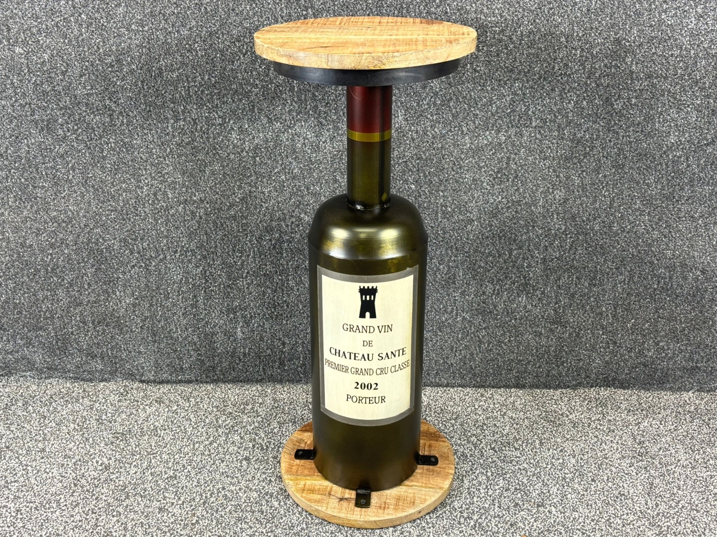 A Wine Bottle Style Side Table with a Wooden Top. Approx 73cm height, 30cm width.