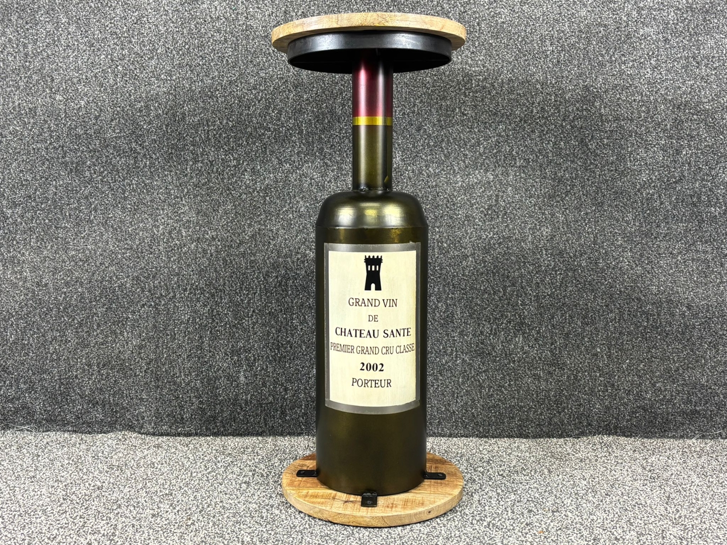 A wine bottle style side table is a distinctive statement piece that blends playful design with practical functionality. Shaped to resemble an oversized wine bottle, it features a detailed label-style front and a warm wooden top that adds contrast and character. The design brings a touch of bar-inspired charm, making it an eye-catching addition to both contemporary and rustic interiors.