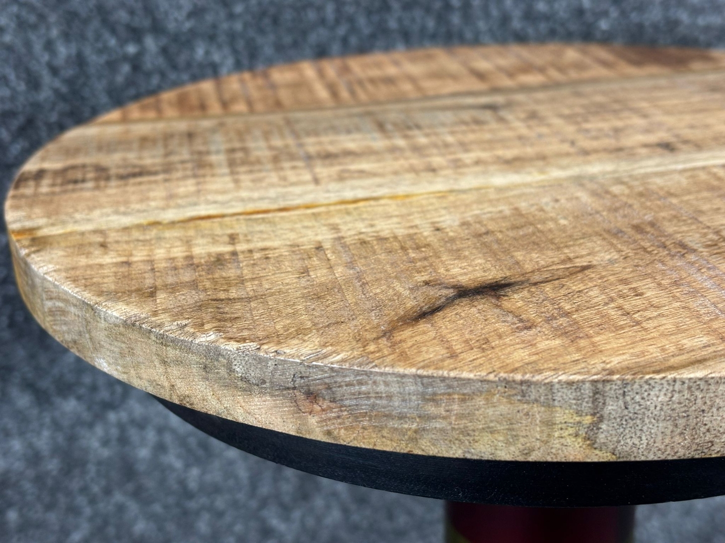 Standing approximately 73cm high and 30cm wide, this table has a slim footprint that makes it ideal for use beside a sofa, armchair, or in a snug corner. The round wooden top offers a convenient surface for drinks, books, or decorative items, while the sturdy base ensures stability. Its vertical form helps it stand out without overwhelming the surrounding space.