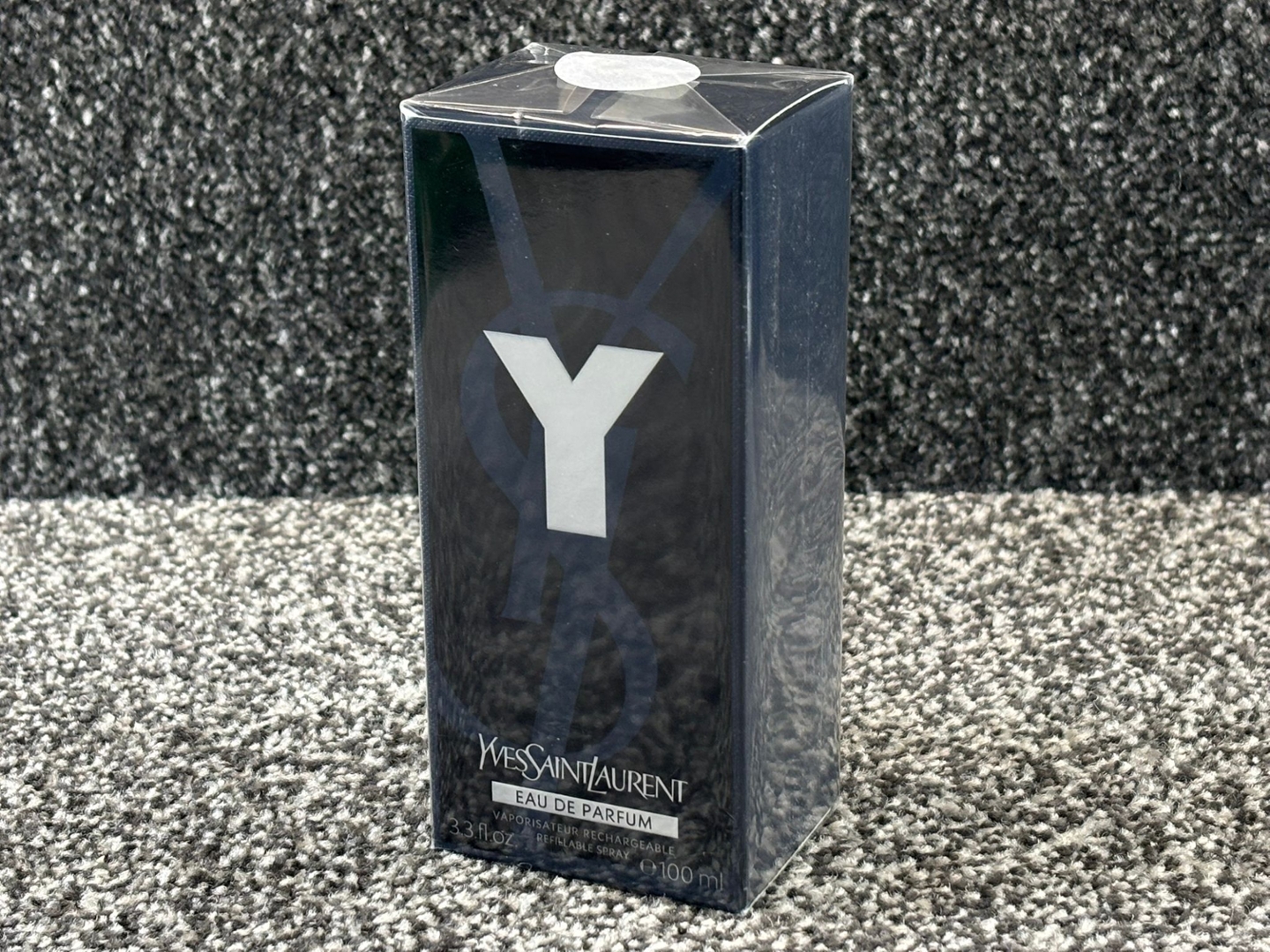 A 100ml bottle of YSL Y Eau De Parfum, presented in its original presentation box and representing a bold, modern fragrance from Yves Saint Laurent. Designed to embody confidence and ambition, Y Eau De Parfum delivers a refined yet powerful character that feels both contemporary and timeless.