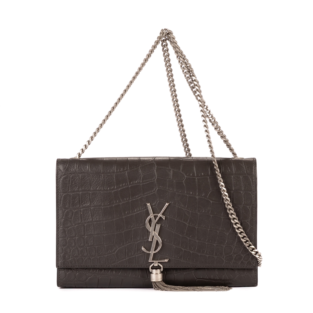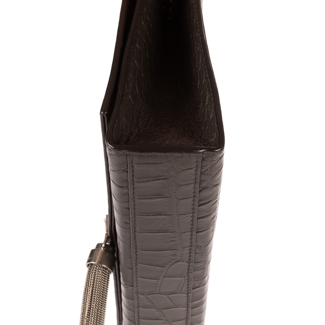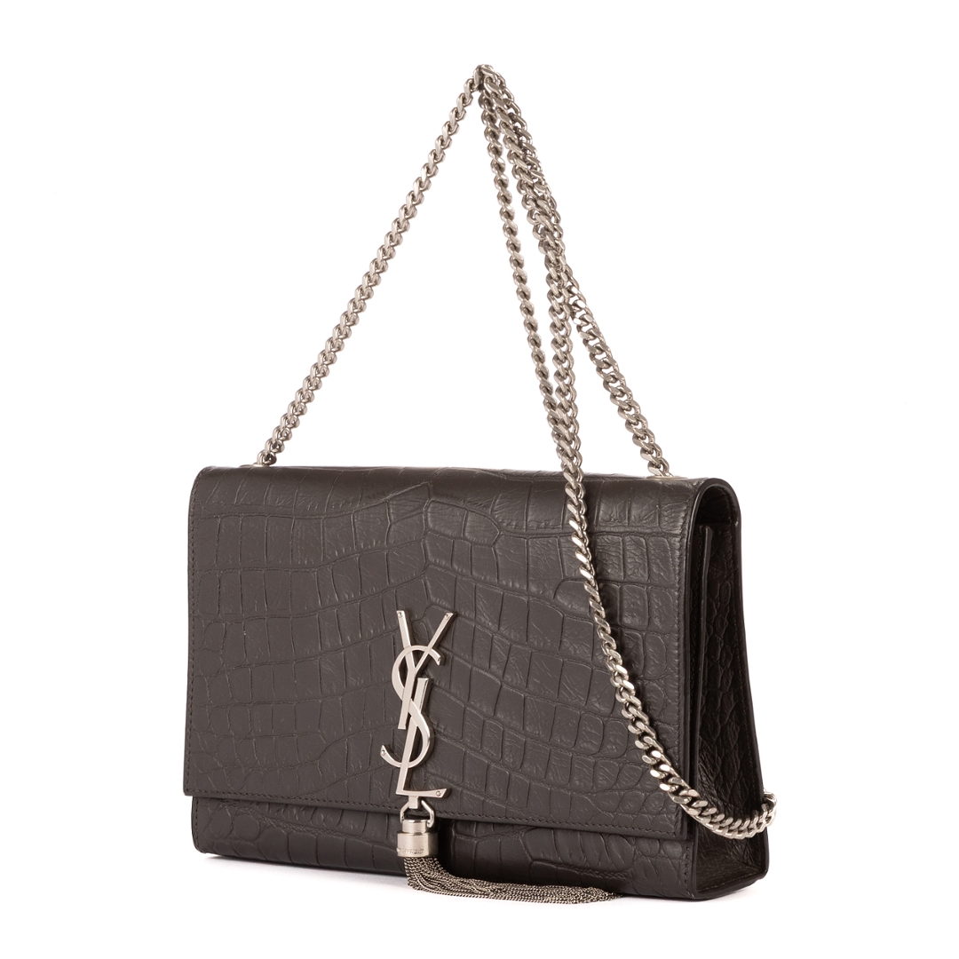 A vintage YSL dark grey calf leather Kate Tassel bag with a certificate of authenticity, Approximately 15cm height, 24cm width.