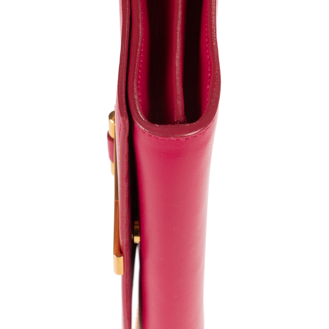 A vintage YSL pink calf leather Ligne-Y Pochette Crossbody bag with a certificate of authenticity, Approximately 12cm height, 17cm width.
