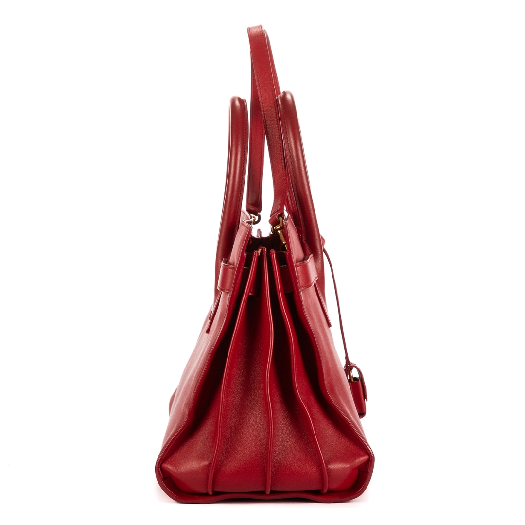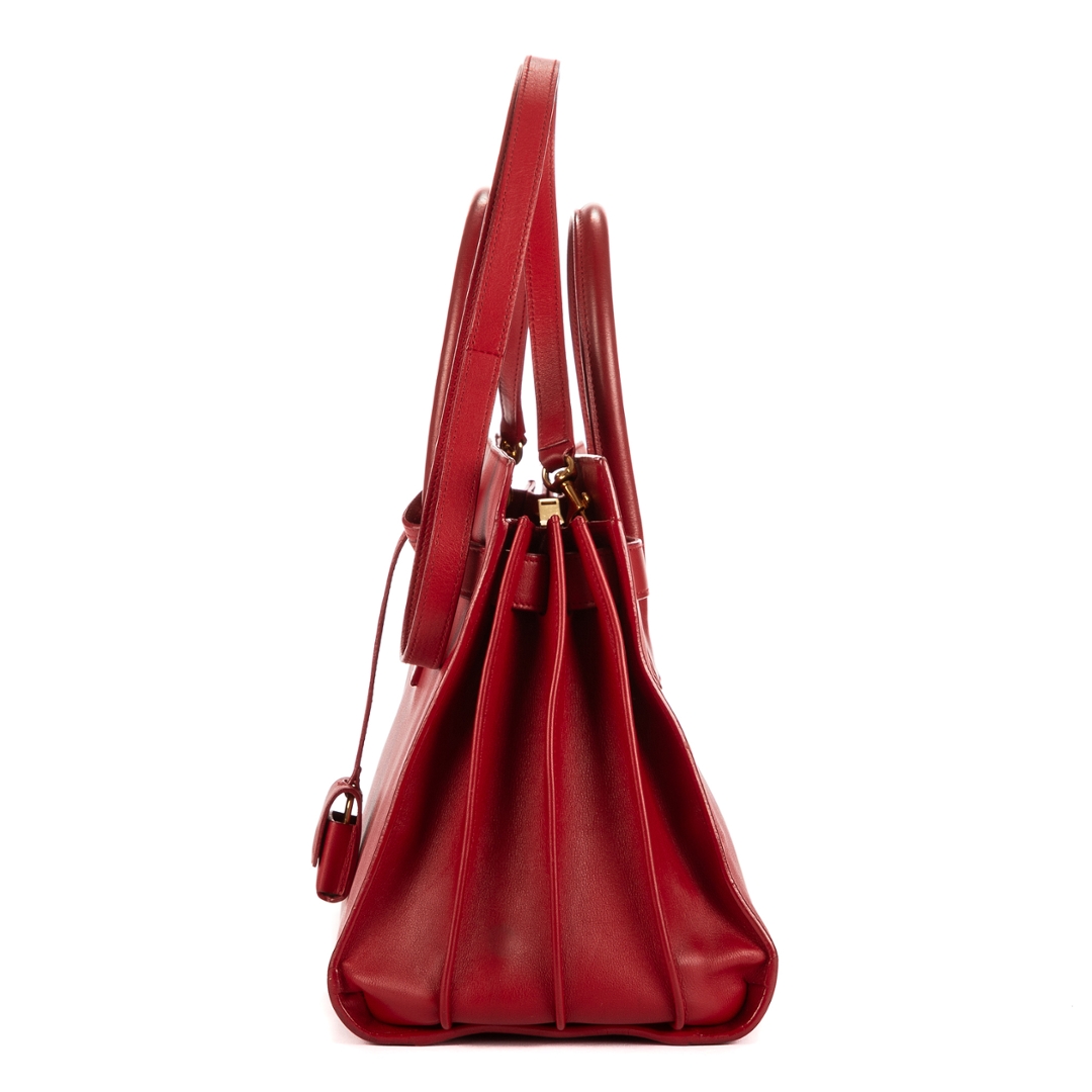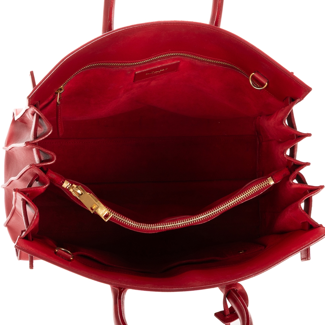 A vintage YSL red calf leather Sac De Jour Nano bag with a certificate of authenticity, Approximately 24cm height, 31cm width.