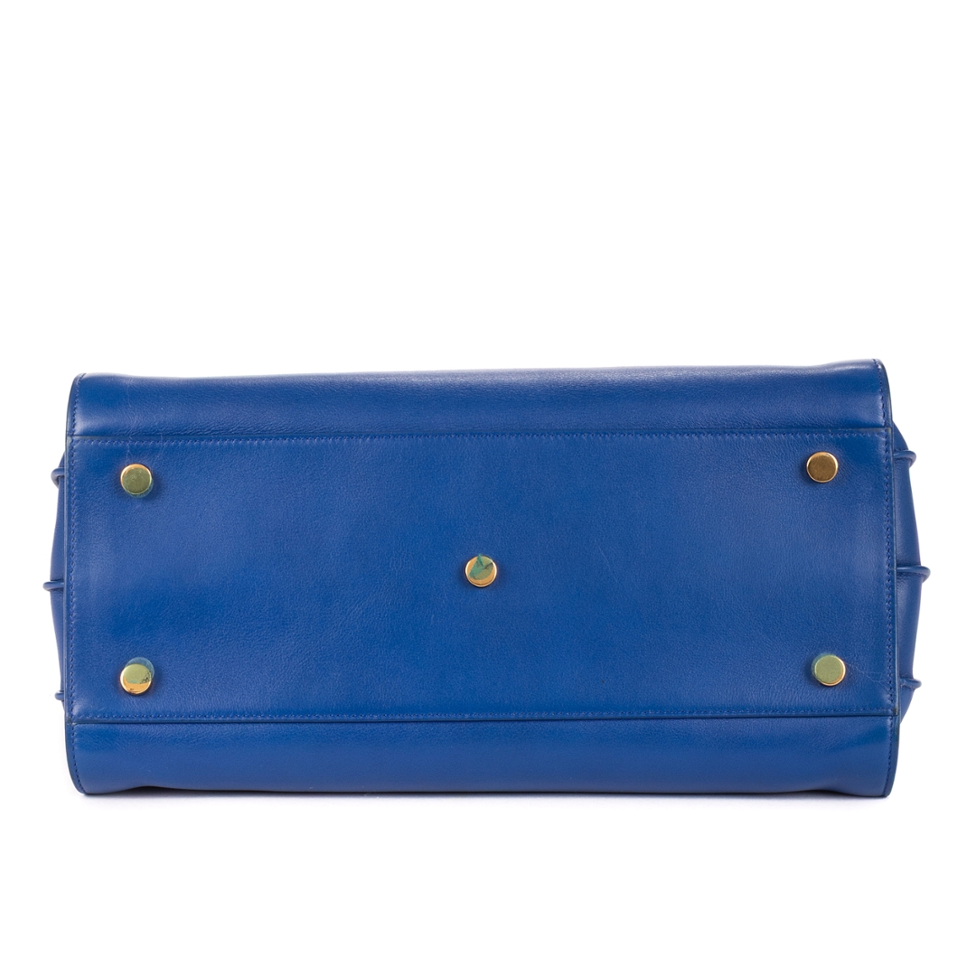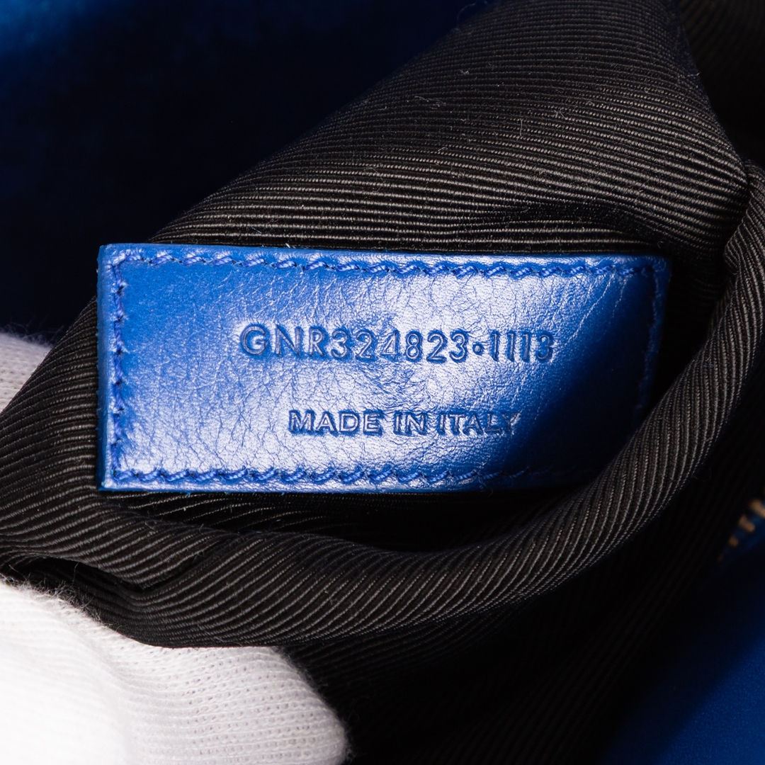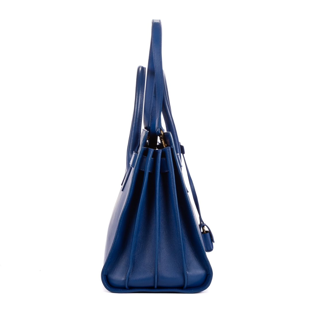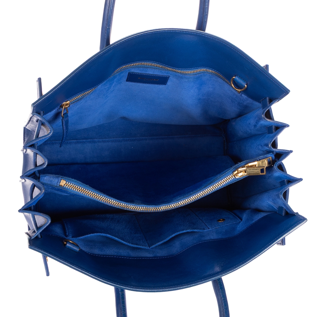 A vintage YSL blue calf leather Sac De Jour Nano bag with a certificate of authenticity, Approximately 24cm height, 31cm width.