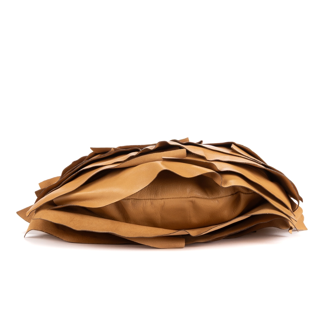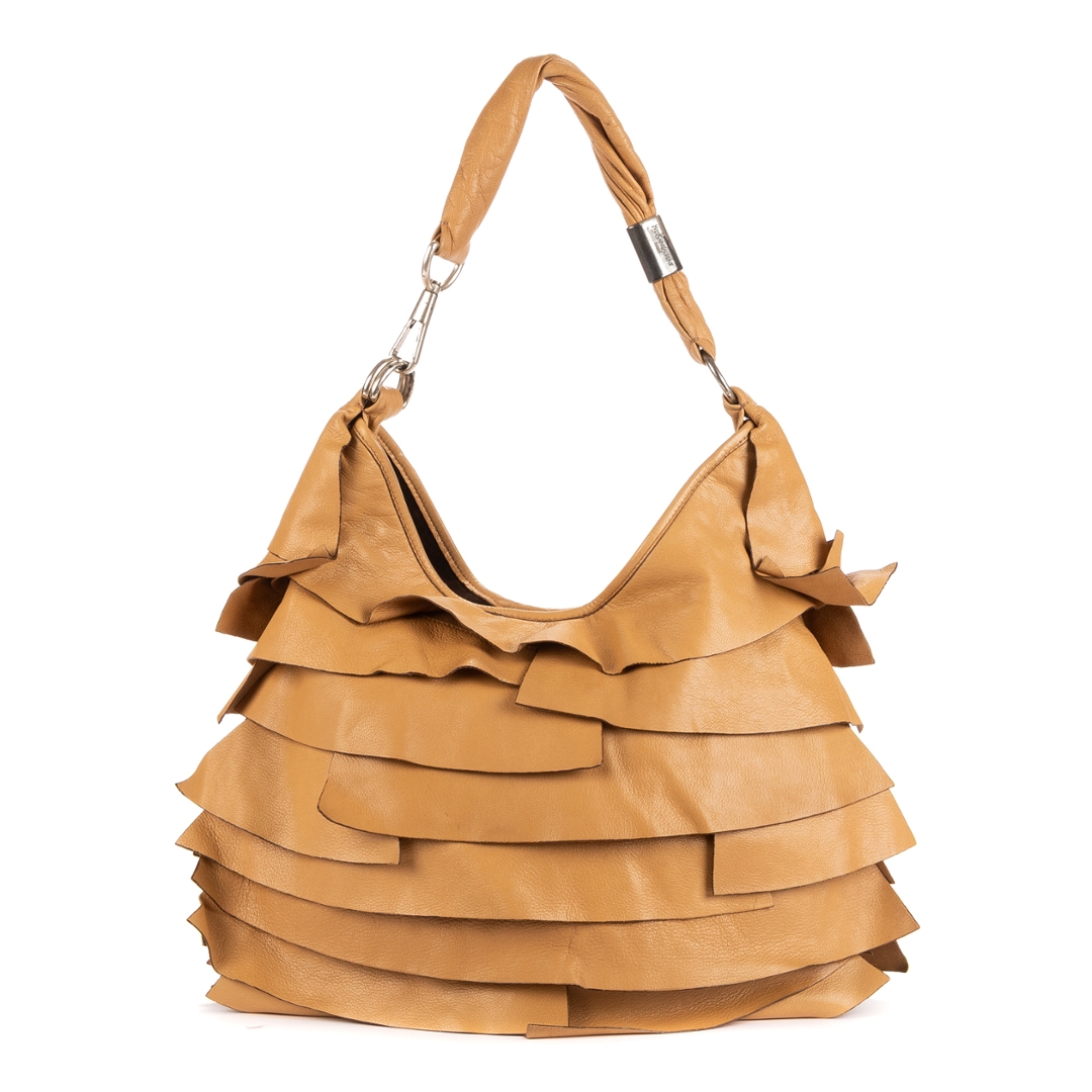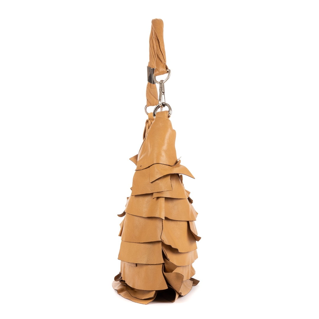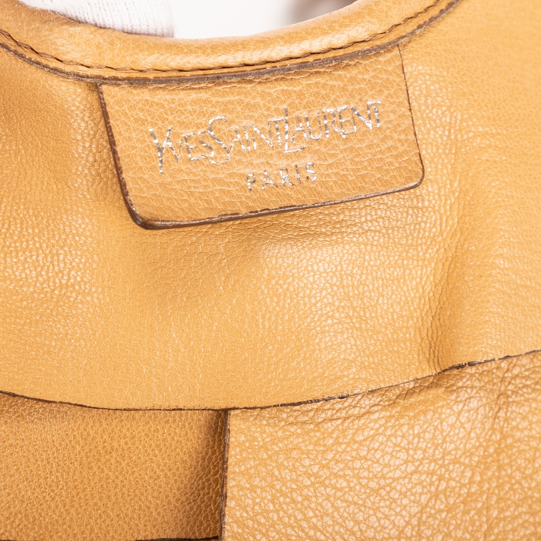 A vintage YSL beige calf leather Saint-Tropez bag with a certificate of authenticity, Approximately 29cm height, 28cm width.