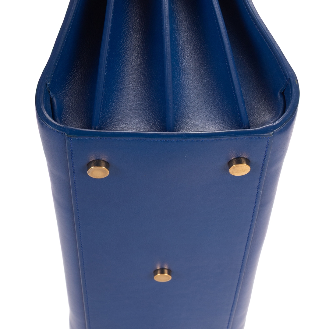 A vintage YSL blue calf leather Supple Sac De Jour bag with a certificate of authenticity, Approximately 24cm height, 31cm width.