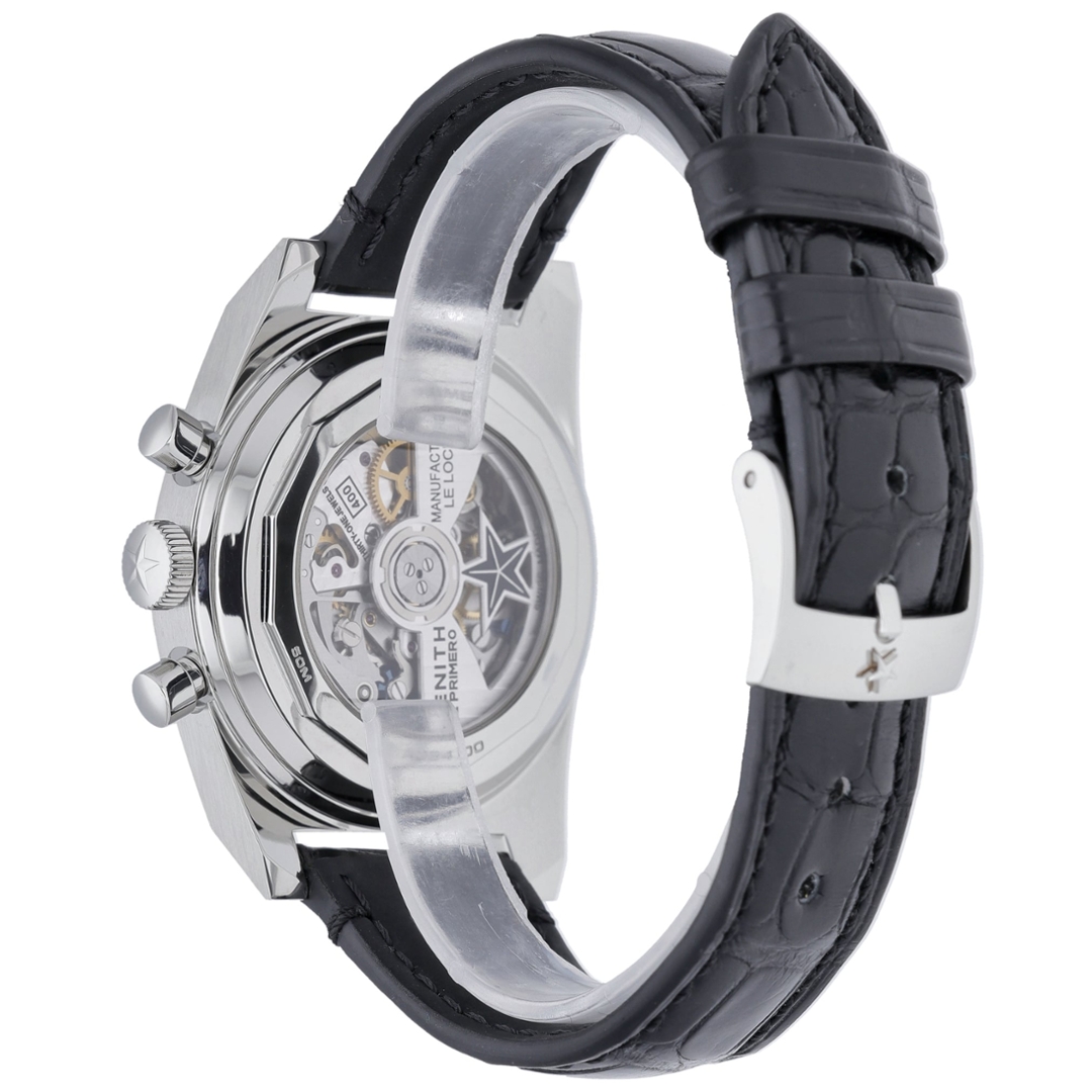 At its core is the legendary Zenith El Primero Calibre 400 automatic chronograph movement. Beating at 36,000 vibrations per hour, this movement is renowned for its precision, smooth chronograph operation, and historical significance as one of the first automatic chronographs ever produced.